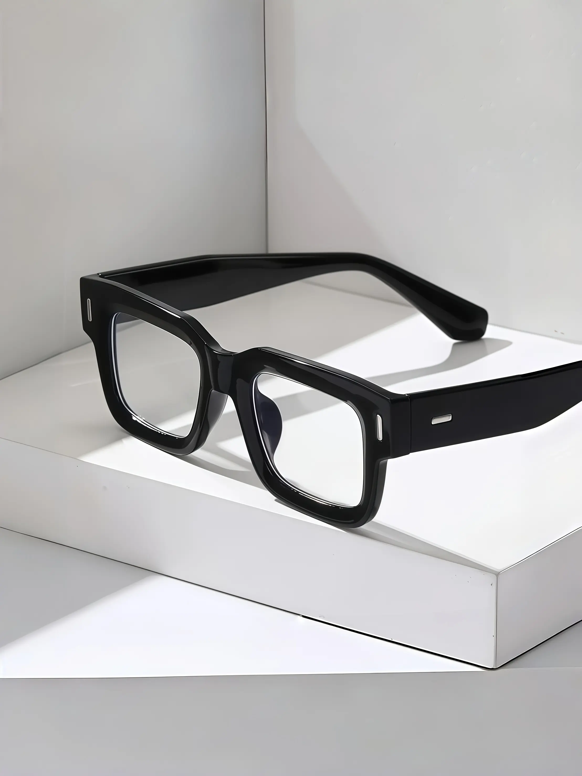 Retro European and American Square Sunglasses, Glossy Black Frame Clear Lenses, Trendy Fashion Shades, Versatile Streetwear Eyewear for Commuting, Dating, Travel, Vacation, Beach Photos, Daily Styling, Back-to-School and Christmas Gifts