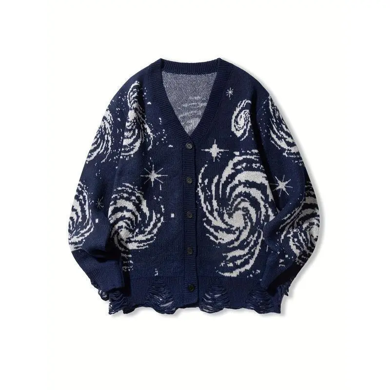 Gender: Men/Product Type: Cardigan/Fabric Composition: 53% Viscose, 47% Polyester/Style: Front buttoned design, loose fit, with For Galaxy pattern/Season: Autumn-Winter/Features: Warm, comfortable, unique pattern design/Occasion: Casual, daily wear, gatherings