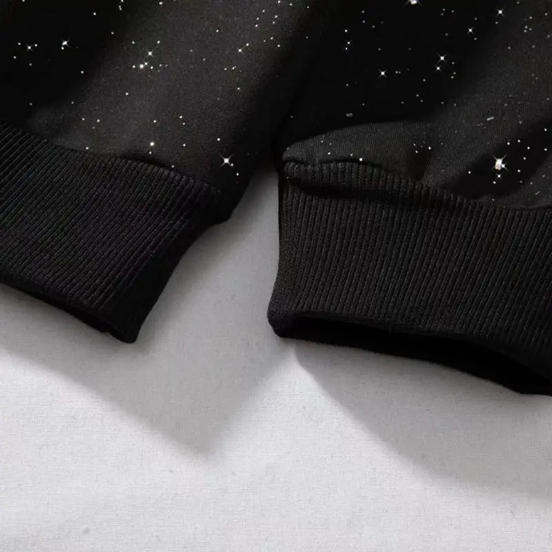 Autumn Winter Starry Sky Sequin Round Neck Hooded Sweatshirt for Men and Women Fashion Casual Wear