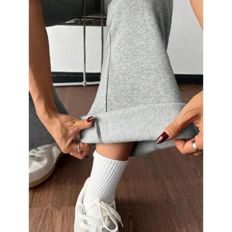 Casual Low-Waist Drawstring Waist Elastic Sports Pants Flared Pants Sweatpants Thermal Lined Composite Velvet Suitable For Autumn And Winter