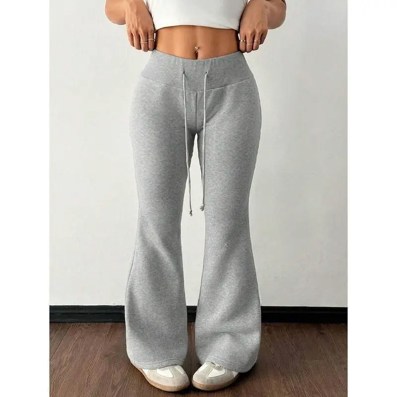 Lined? :Unlined Festivals:Thanksgiving Day Lined For Added Warmth:No Pattern Type:Plain Style:Casual Closure Type:Elastic Waist Pockets:No Details:Split, Drawstring, Knot Color:Light Grey Type:Flare Leg Waist Line:Low Waist Length:Extra Long Fit Type:Regular Fit Temperature:Spring/Fall (18-25 ��C/63-77 ��F) Fabric Elasticity:Non-Stretch Material:Knitted Fabric Composition:100% Polyester Care Instructions:Machine wash or professional dry clean Belt:No Sheer:No