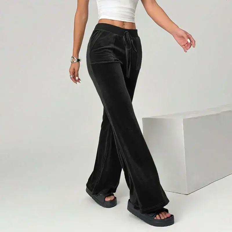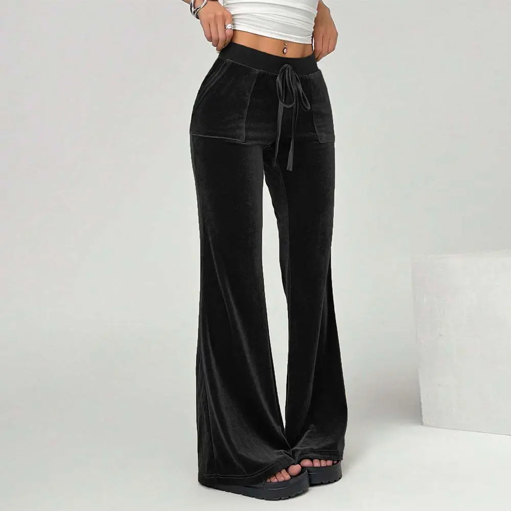 2025 Women's wear simple and elegant velvet casual pants for autumn and winter, drawstring to slim legs, wide-leg long pants