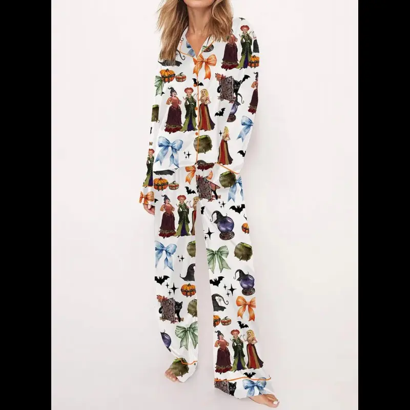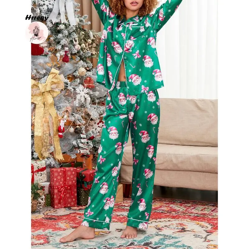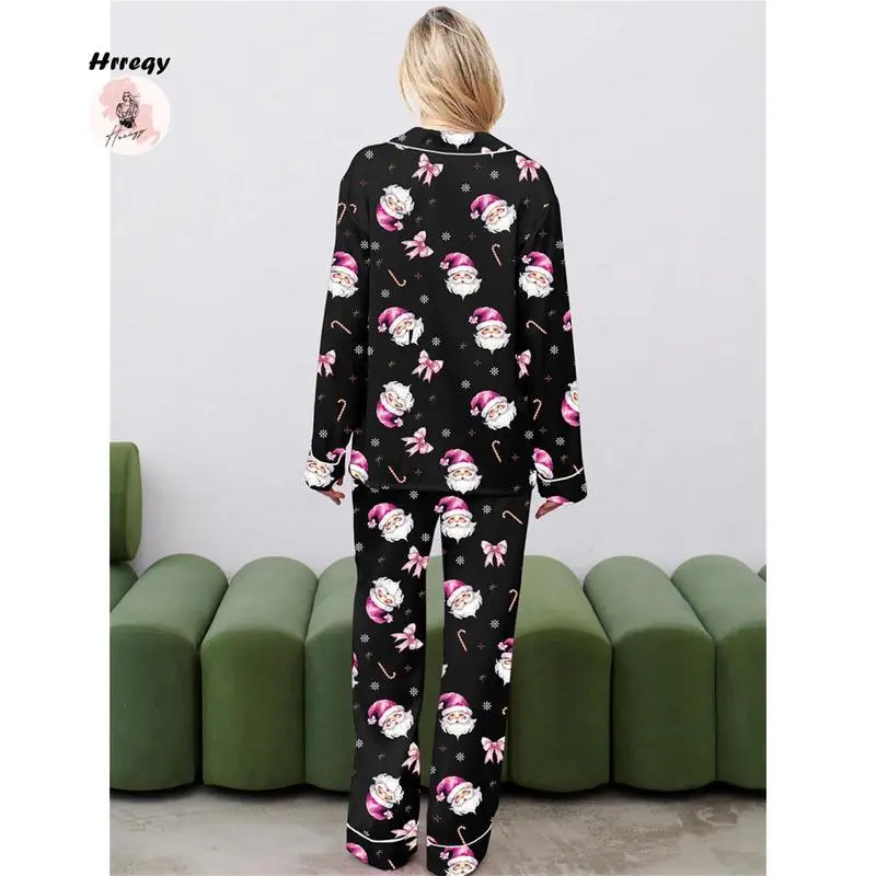 WomenChristmasPajamaSet,SantaClausPrintLongSleeveShirtwithPantsSleepwearLoungewear