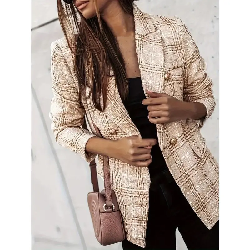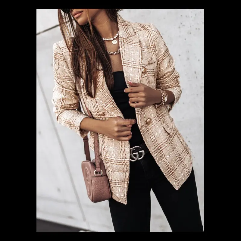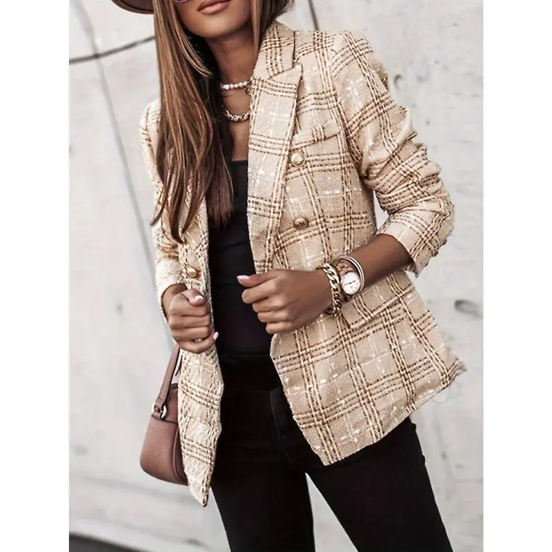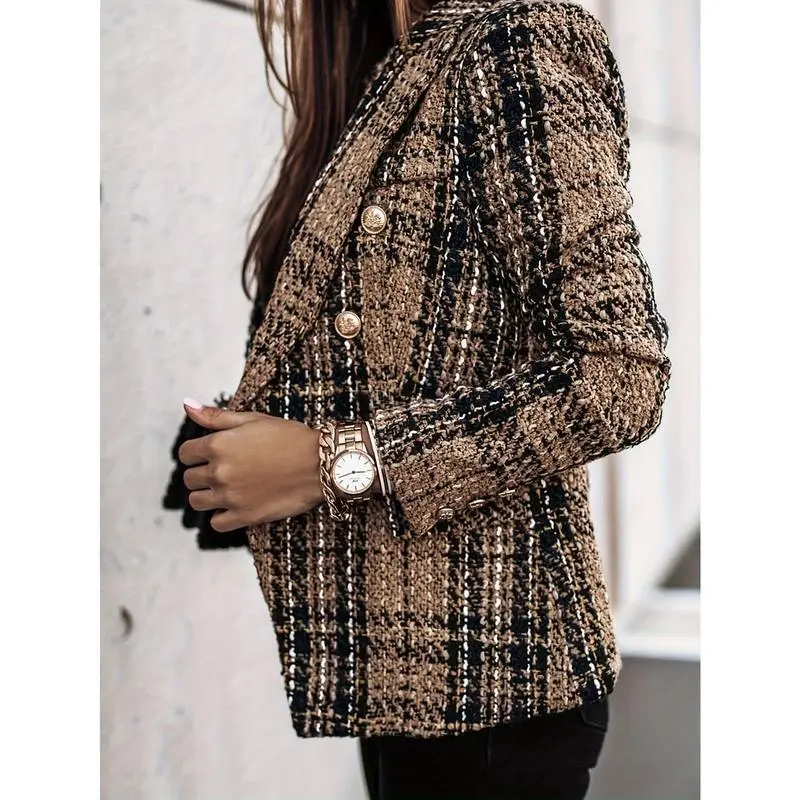 Developing a Brand New Autumn And Winter Casual Tweed Elegant Checkered Blazer for Women in The Office for 2024.