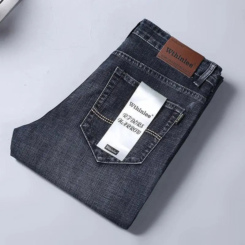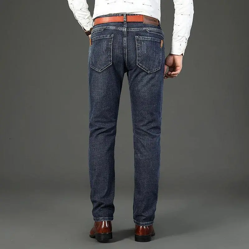 Business Men's Jeans Casual Straight Elastic Fashion Classic Blue Work Denim Pants Men Clothing Sizes 28-40