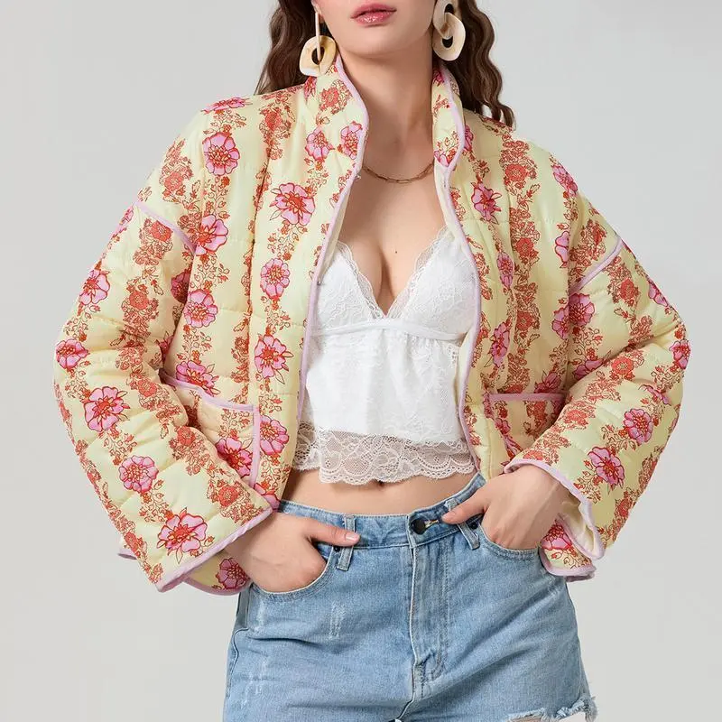 Women's Autumn Winter Puffer Coat Long Sleeve Stand Collar Floral Jacket with Pockets/Size(cm)/S Length: 62 Bust: 118 Sleeve: 50/M Length: 63 Bust: 122 Sleeve: 51/L Length: 64 Bust: 126 Sleeve: 52/Size(inch)/S Length: 24.41 Bust: 46.46 Sleeve: 19.69/M Length: 24.80 Bust: 48.03 Sleeve: 20.08/L Length: 25.20 Bust: 49.61 Sleeve: 20.47/Specification:/Material: 100% Polyester/Sleeve Length: Long/Pattern Type: Floral/Gender: Women/Item Type: Coat/Package Included:/1 x Coat/Friendly Tips:/1. Please kindly allow a 2-3% difference according to manual measurement./2. Please check the measurement chart carefully before you buy the item.(1 inch=2.54cm)/3. Please note that a slight color difference should be acceptable due to the light and screen. Thanks./Promise:/If the product has any quality problems, please feel free to contact us, we will help you solve the problem as quickly as possible.