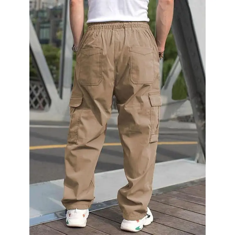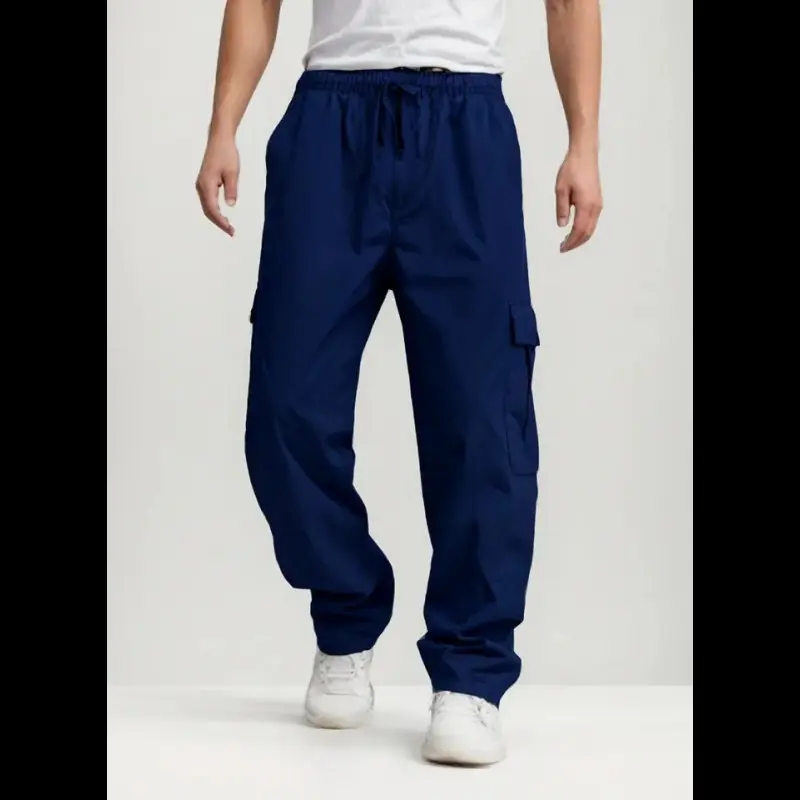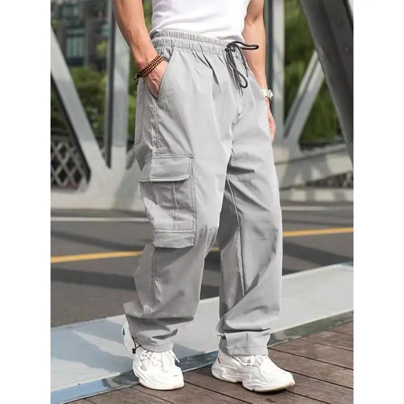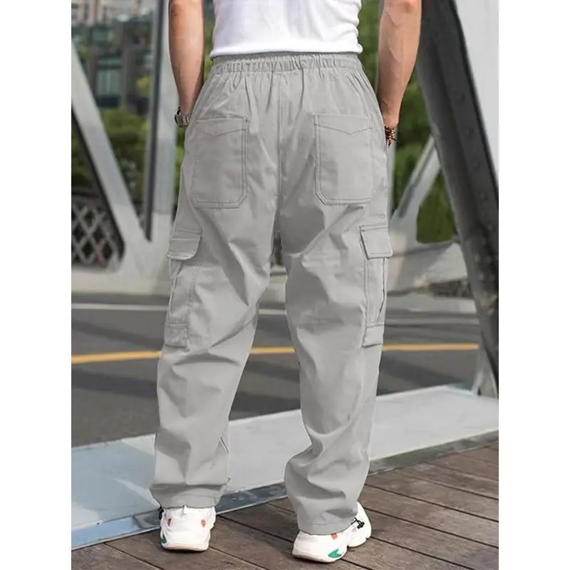 Functional Pocketing : Equipped with multiple pockets, these cargo pants offer ample storage for essentials while maintaining a sleek profile./Elastic Waistband : Features a convenient elastic waistband with a drawstring, providing a customizable fit for enhanced wearability./Straight Leg Cut : The straight leg design ensures a balanced silhouette, making these pants suitable for a variety of occasions./Seasonal Adaptability : Designed for all seasons, these pants effortlessly transition from warm to cooler weather without losing their appeal./Durable Construction : Crafted with a woven method, these pants promise longevity and resilience, standing up to daily wear and action.