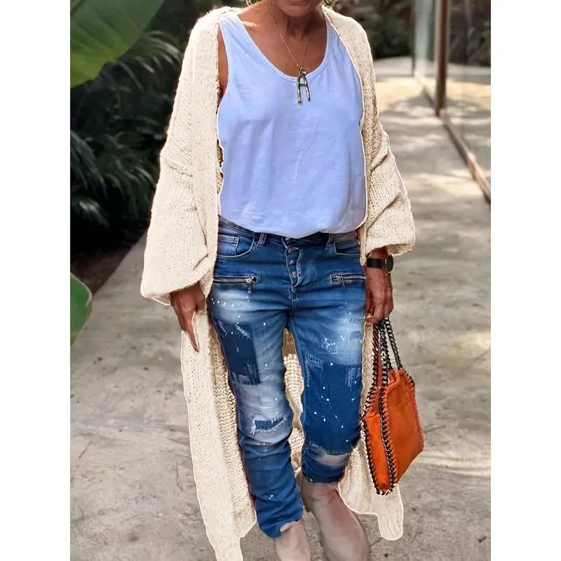 Dokotoo Women's Fashion Casual Open Front Long Sleeve Chunky Knit Cardigans Sweaters Outerwear Coats for Fall Winter Lightweight Fuzzy Cozy Knitwear