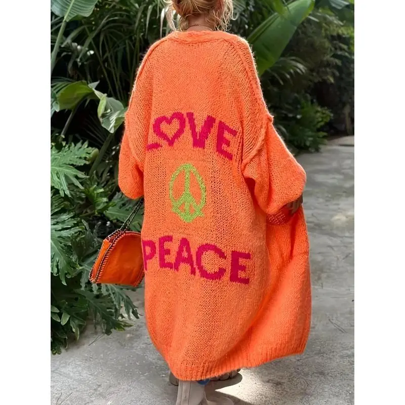 Letter Pattern Open Front Cardigan, Casual Drop Shoulder Long Sleeve Cardigan For Spring & Fall, Women's Clothing