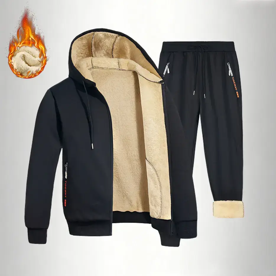 Men's 2-Piece Heavyweight Warm Fleece Hooded Jacket and Joggers Set - Winter Thermal Athletic Gear with Zipper Pockets, Gym & Outdoor Training Apparel, Machine Washable Sweatsuit