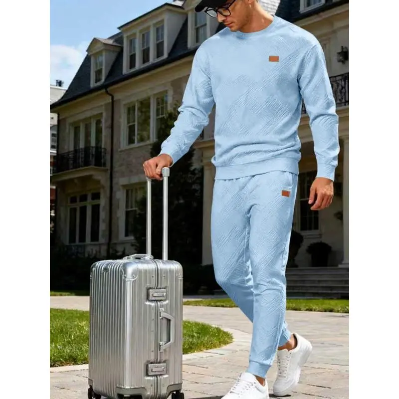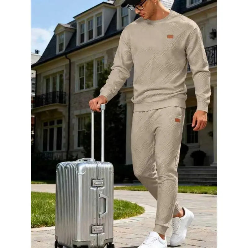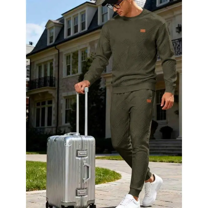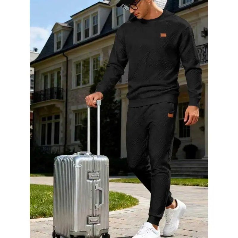 BLACK FRIDAY Tiktokshopcybermonday hoodie+sweatpants flipthecamera Men's Fall Winter Heavyweight Loose Fit Warm Fleece Casual Round Neck Sweatshirt Set, American Style, Comfortable and Stylish