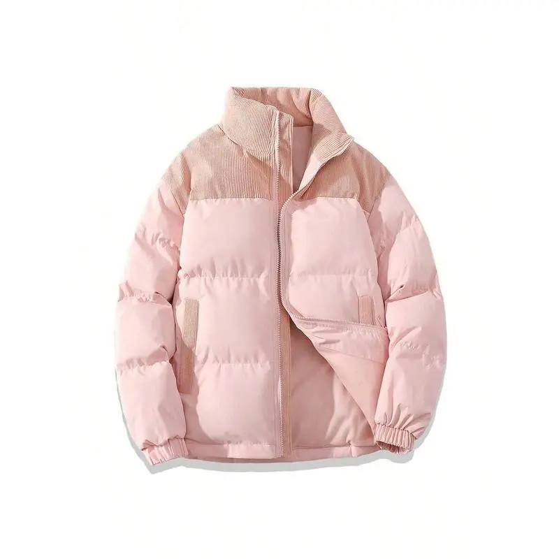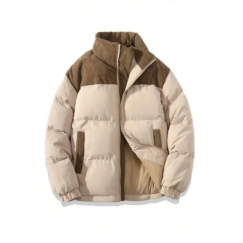 New Autumn Winter Cotton Jacket Unisex Brand Color-Block Fashion Loose Puffer Jacket Thickened Warm