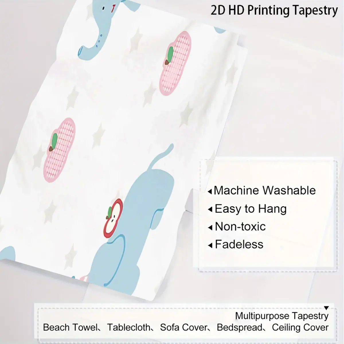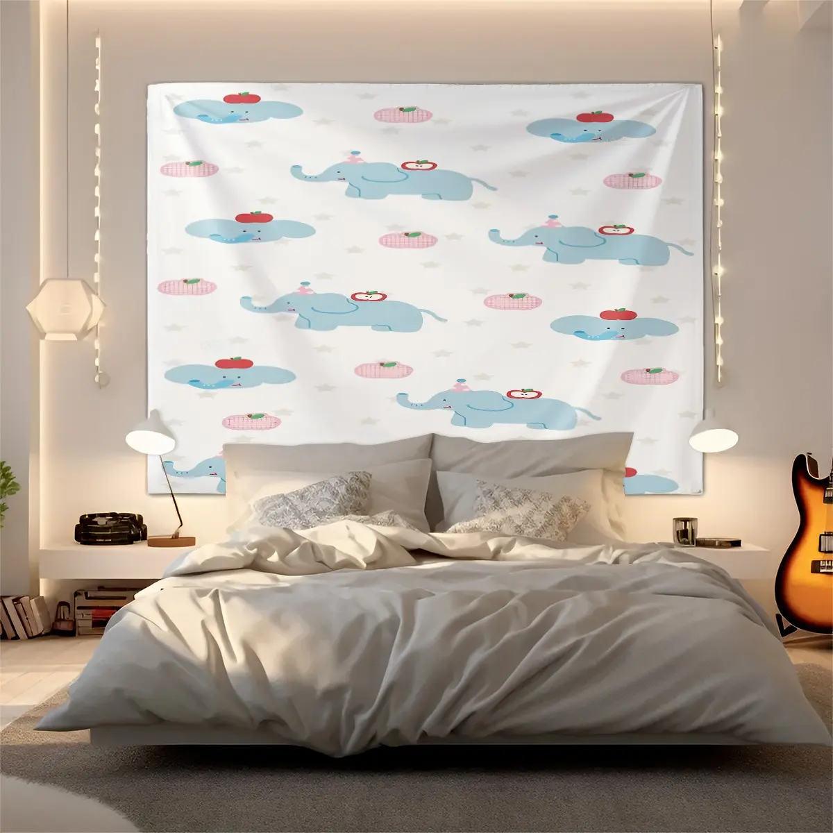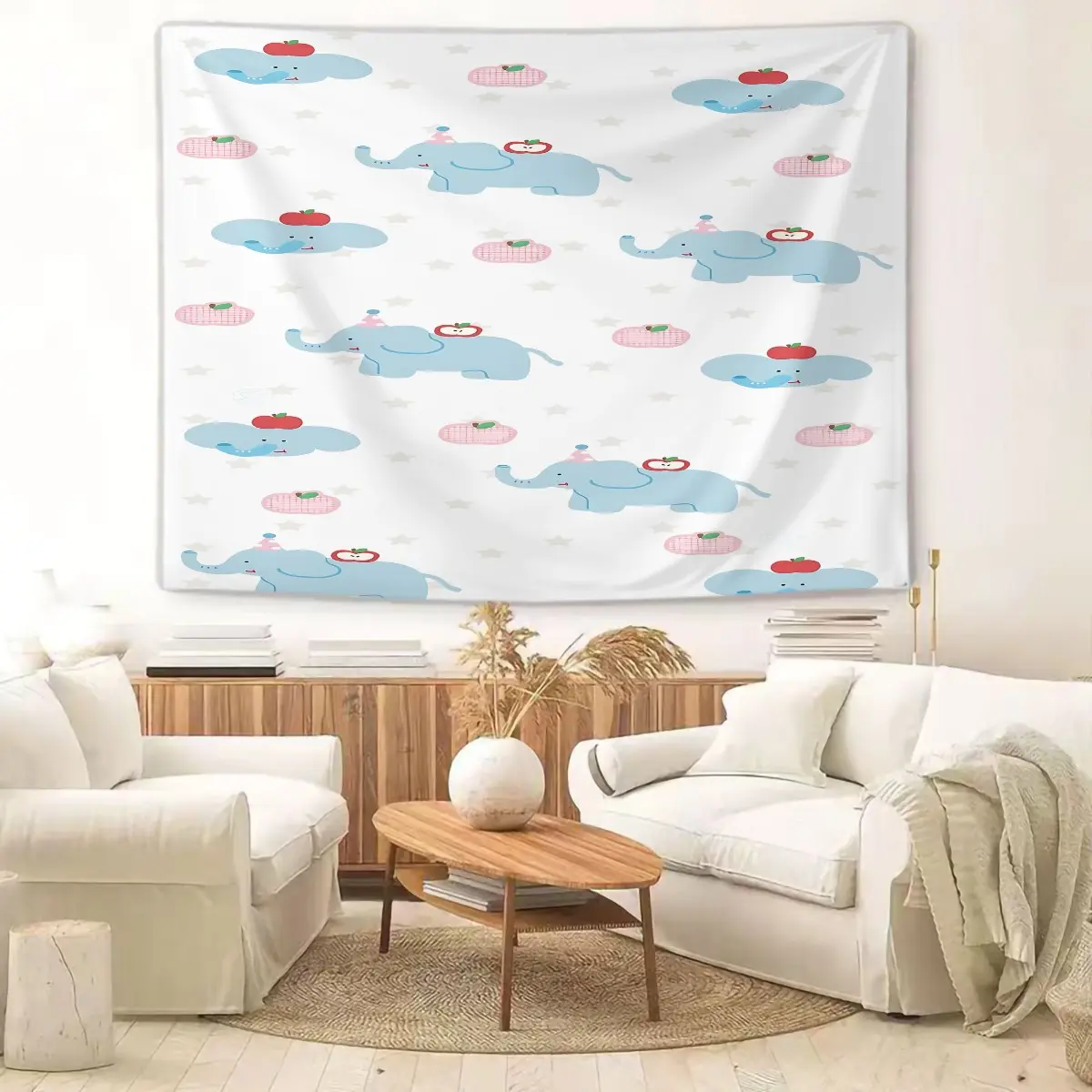 1 Fresh and Cute Cartoon Elephant Print Tapestry, Suitable for Bedroom, Living Room, and Dorm Room Wall Decor a Gift Loved by Children and Teenagers