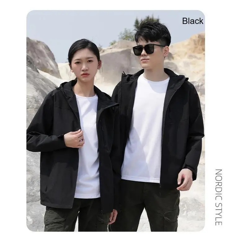 Outdoor waterproof and windproof men's and women's same soft shell jacket thin jacket