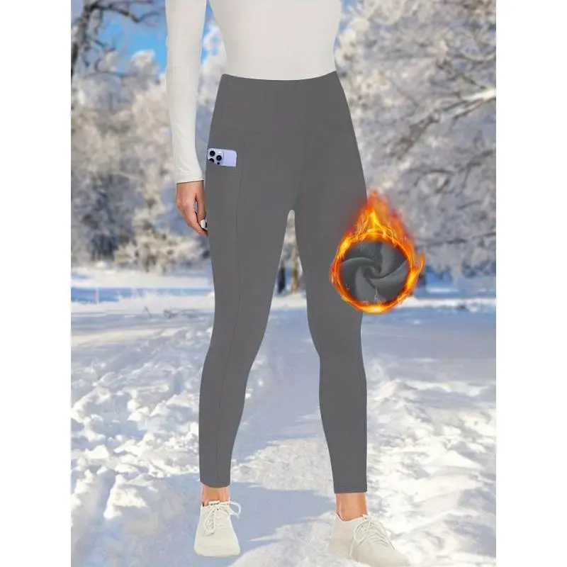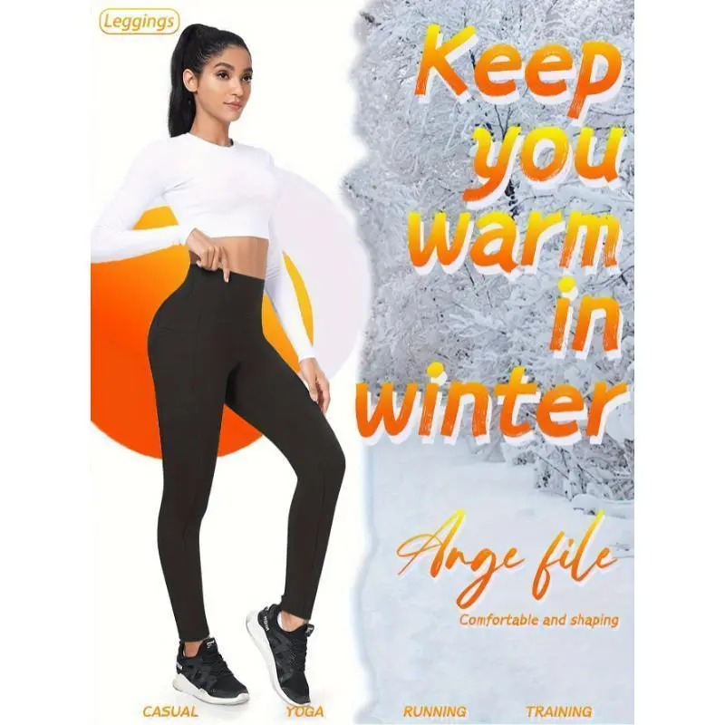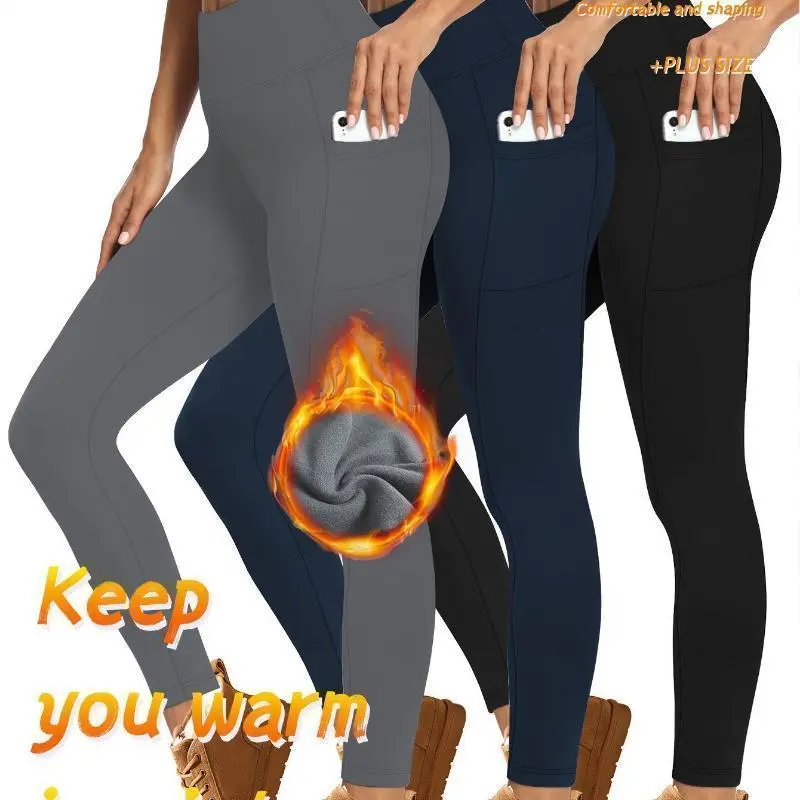3 Pieces Of Fall And Winter Brushed Fleece Lined Leggings With Pockets, Women's High Waisted Outerwear Sport Fleece Yoga Pants For Warmth In Fall And Winter. Slimming High-waisted Yoga Pants, Sports Running Tights.