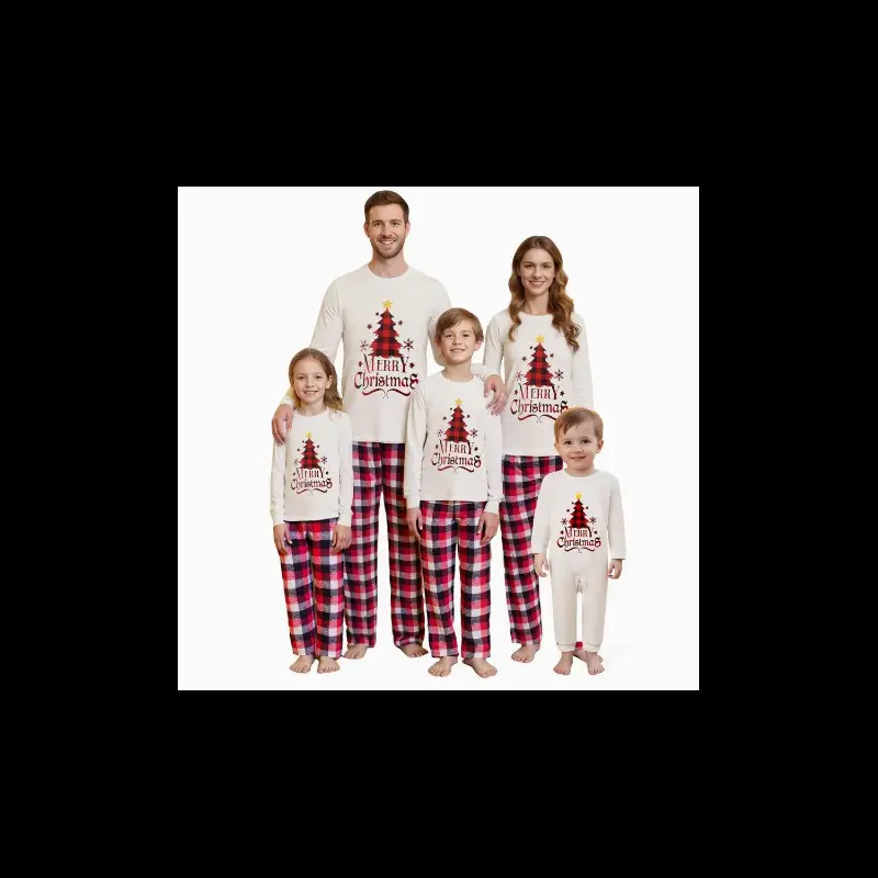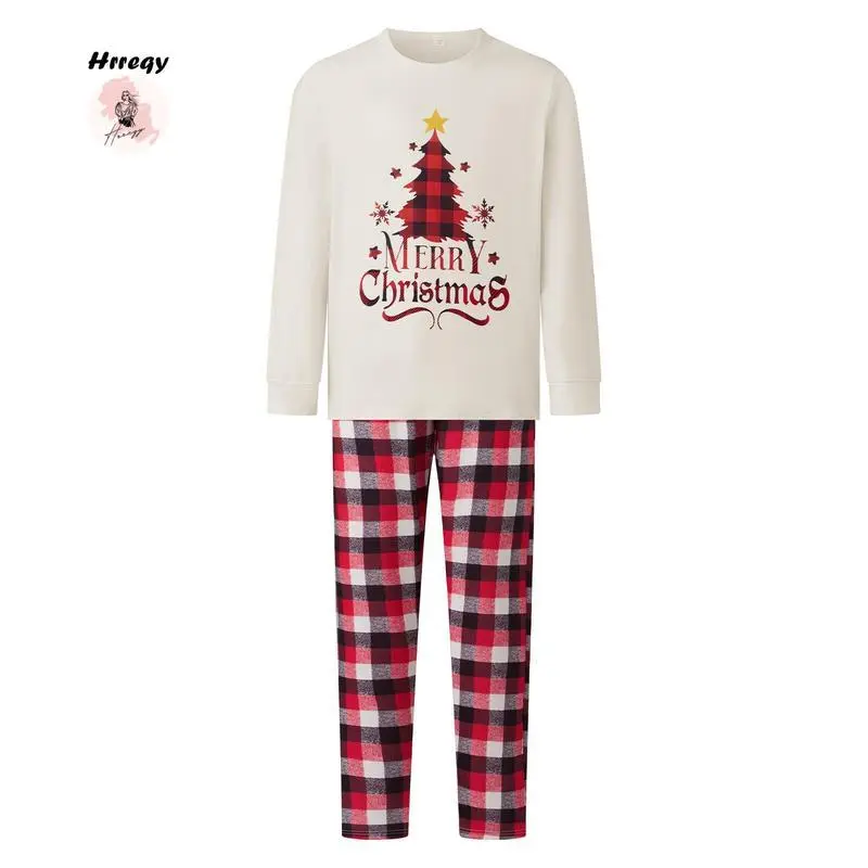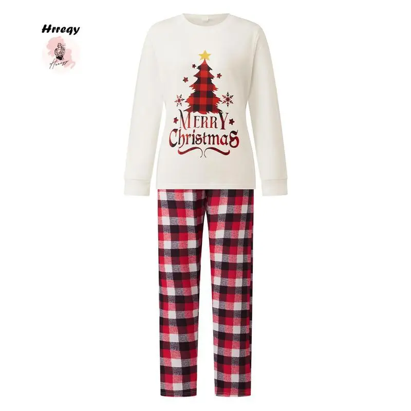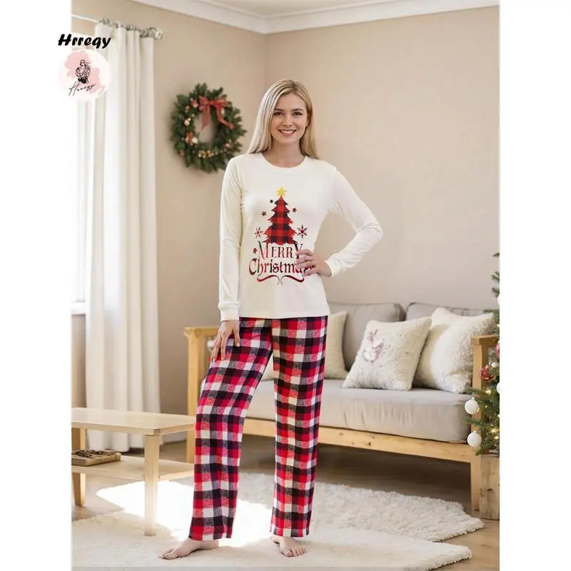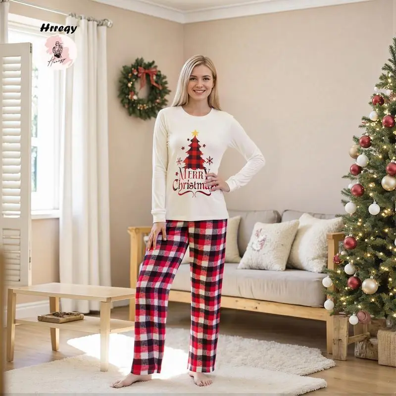 Matching Christmas Pajama Set, Christmas Tree Letter Print Long Sleeve Tops and Plaid Pants Holiday Sleepwear Outfits