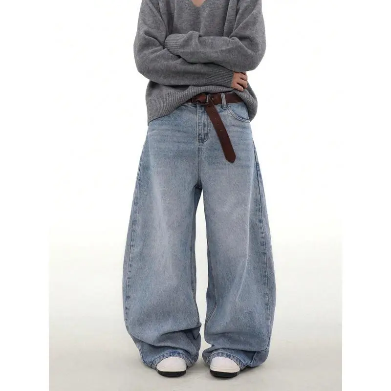 Vintage Baggy Jeans Grunge Streetwear Wide Leg Denim Pants with Pockets Fabric Fashion