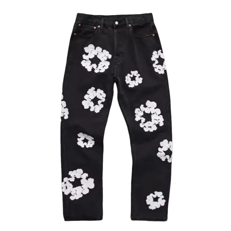 Embroidered Kapok Loose Straight Leg Casual Men's and Women's Jeans, Fashion Couple Pants Menswear TrouserExercise111ZestMove Store Can be used with raincoat