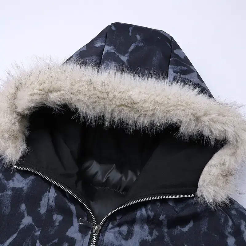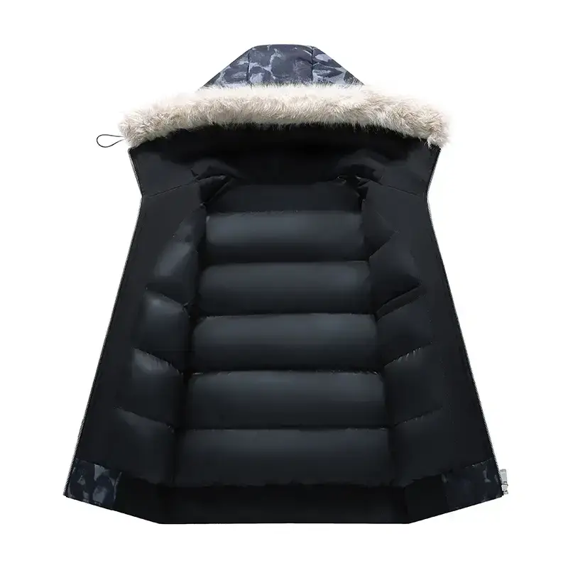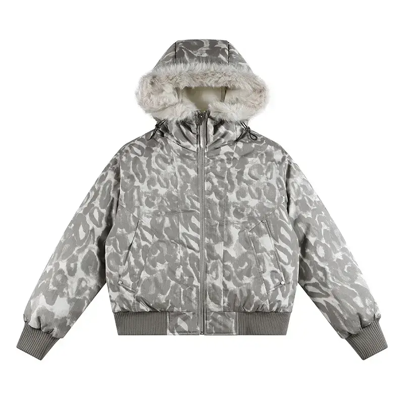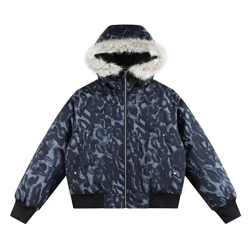 New Men's Autumn Winter Coat Thickened Warm Plaid Hooded Cotton Jacket With Leopard Print Stylish Casual Long Sleeve Black Menswear Top