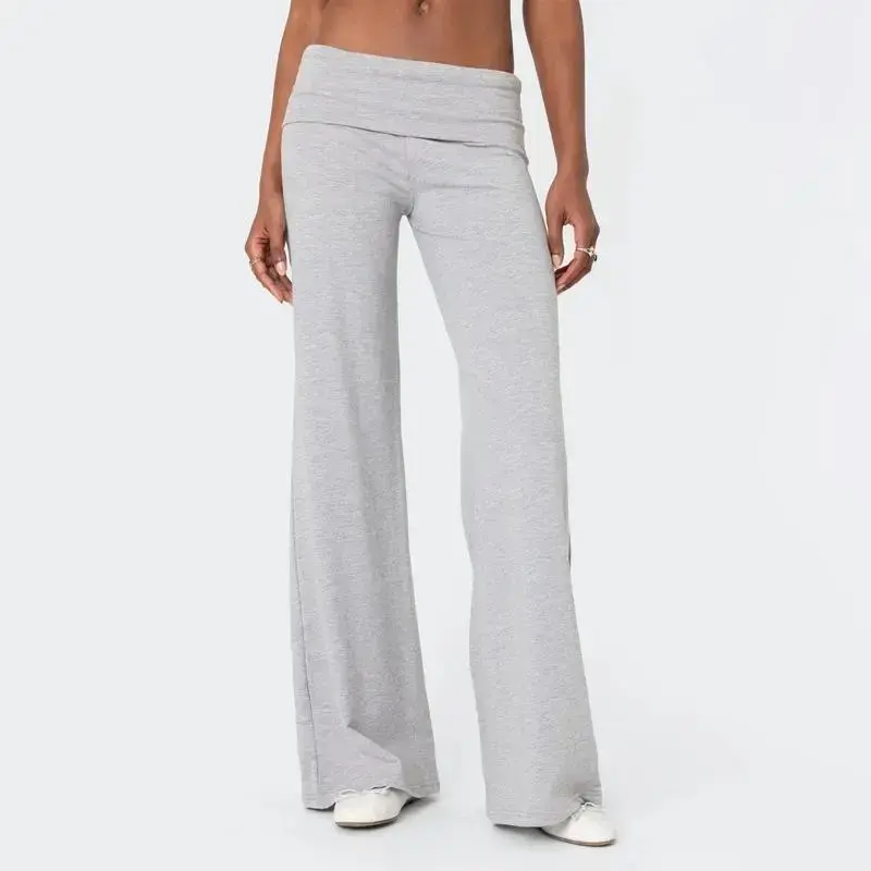 Casual Wide Leg Sweatpants for Women Fold Over Low Rise Flare Yoga Lounge Pants Back to School Clothes for Teen Girls Outfits