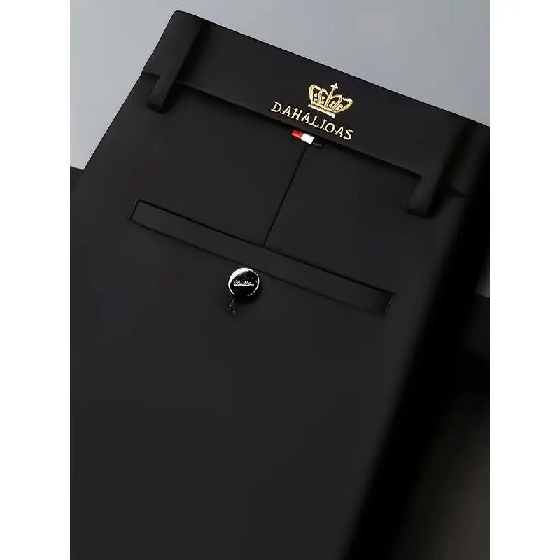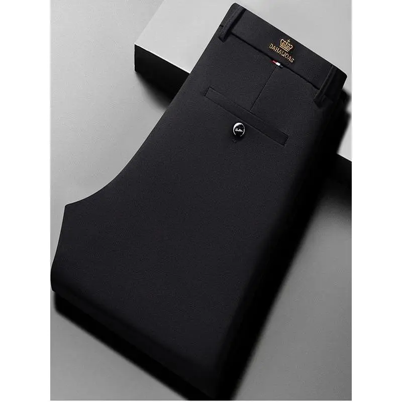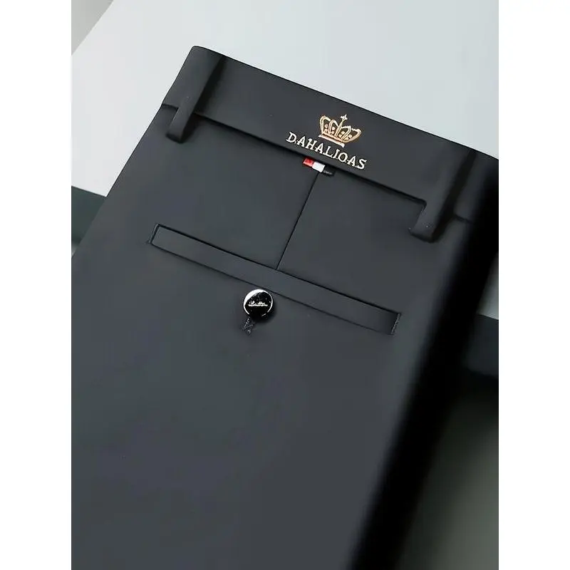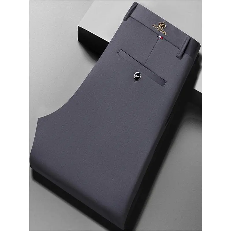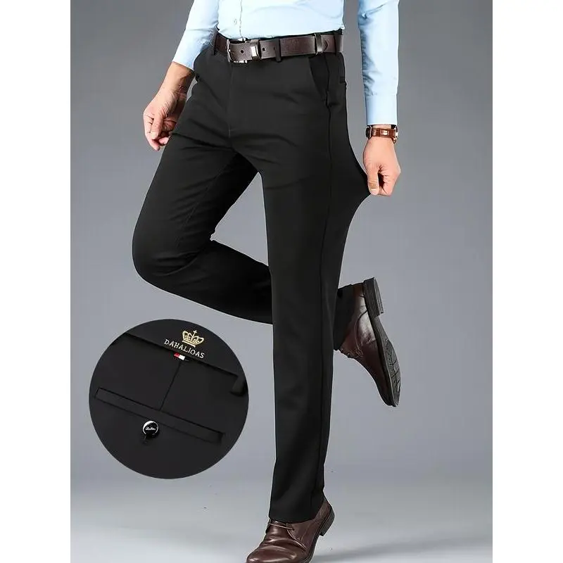 Men's Embroidered Loose Straight Leg Elastic Formal Pants, Anti-Wrinkle Comfortable Business Trousers for All Seasons