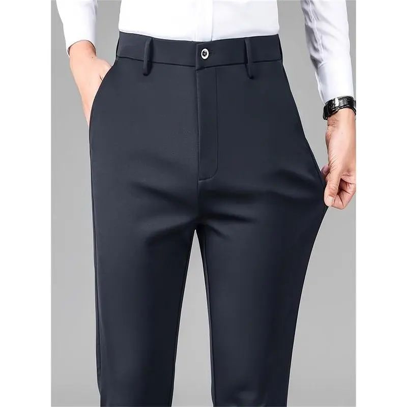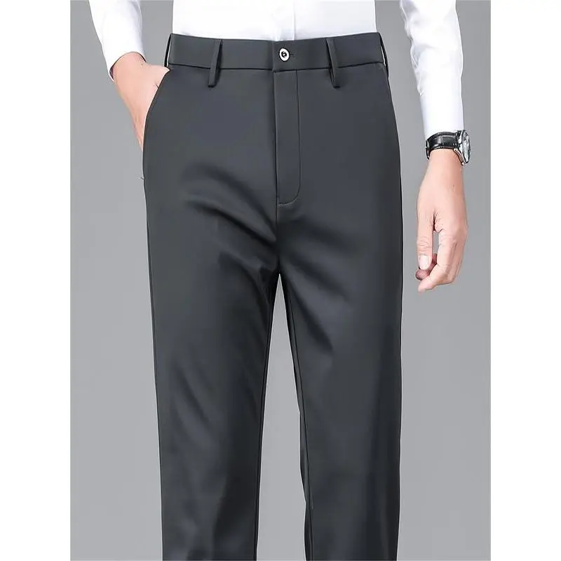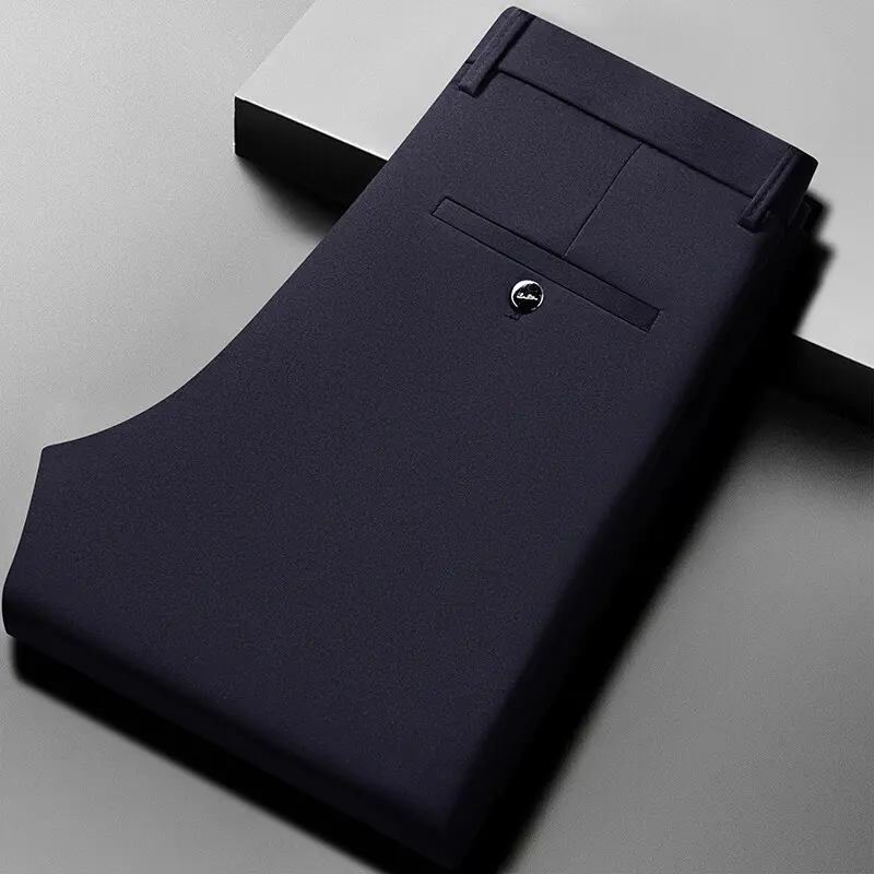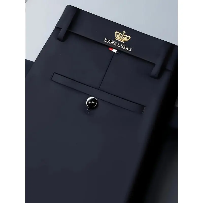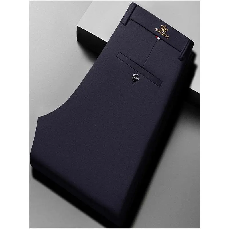 Men's Embroidered Loose Straight Leg Elastic Formal Pants, Anti-Wrinkle Comfortable Business Trousers for All Seasons