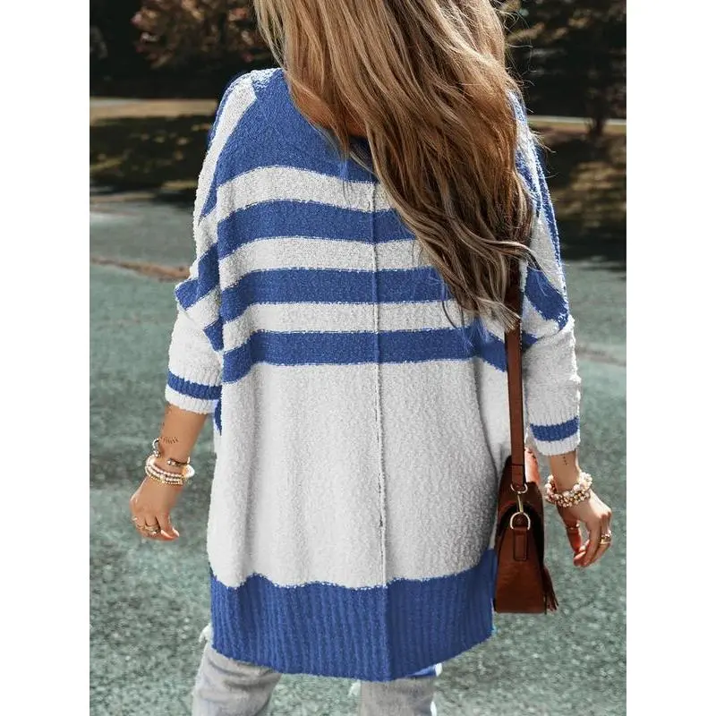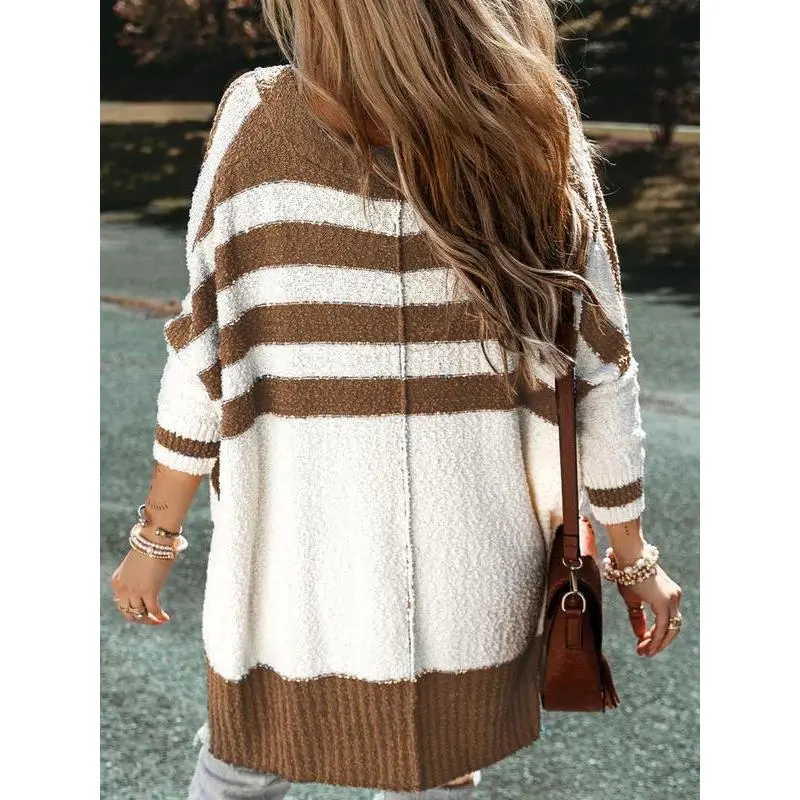 Women'sColorblockStripedPrintButtonFrontHighLowHemCardigan,ChicCasualDropShoulderKnitwearLongSleeveVNeckCardiganforFall&Winter,CardiganforWomen,WinterClothesWomen2024,Women'sKnitClothingforDailyWear(gift)