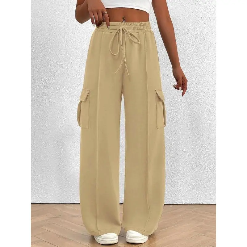 ??Plus Size?? Solid Drawstring Waist Cargo Pants, Casual Elastic Waist Pocket Trousers for Women, Women's Bottoms for Fall & Winter??gift?? Clothes Womenswear