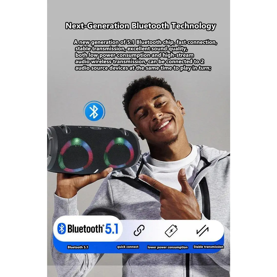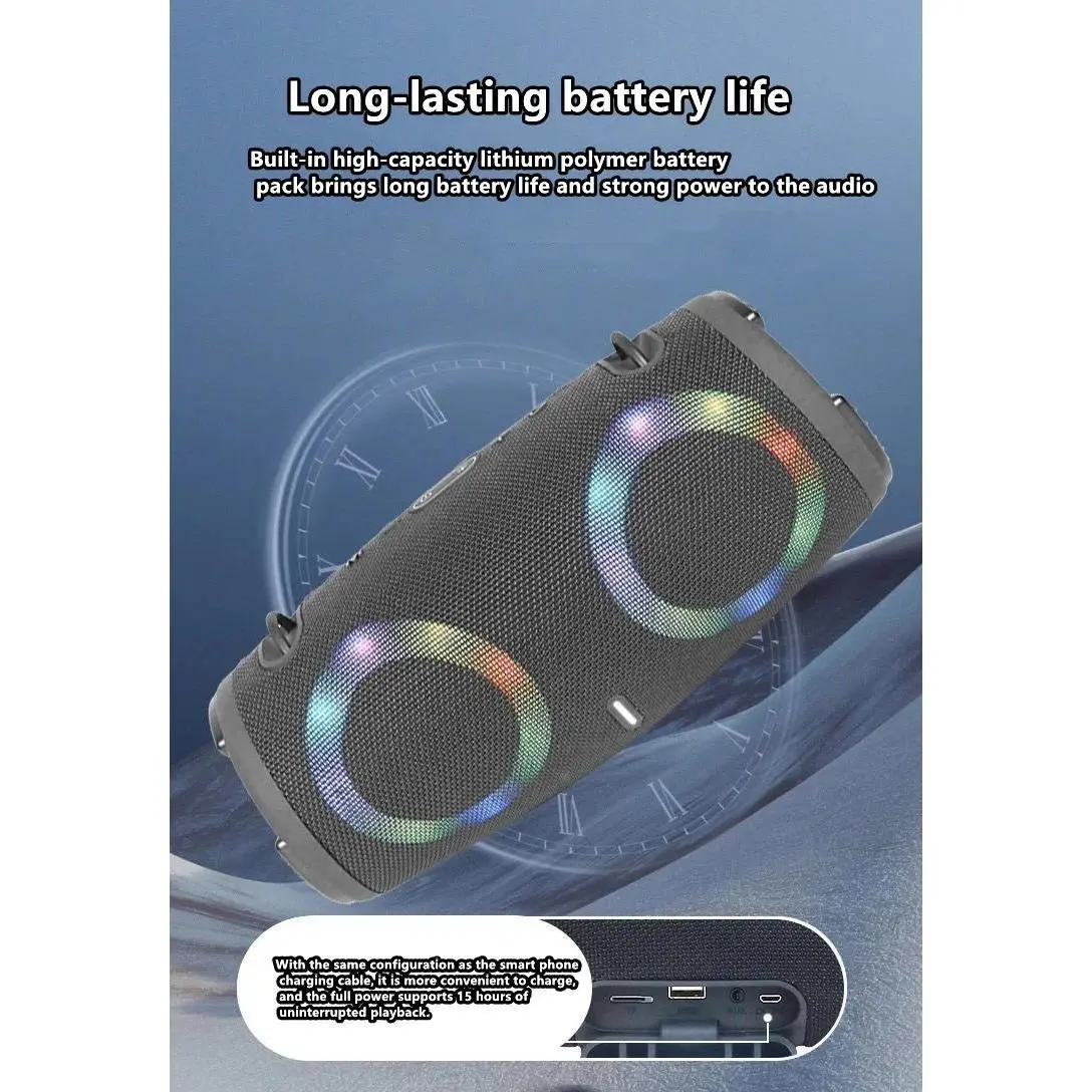 This speaker supports TWS and FM, offering versatile connectivity. It is a must-have for those who demand high performance in a portable device. The RGB lights and waterproof feature make it a standout choice. Perfect for music lovers who need a powerful, portable speaker.
