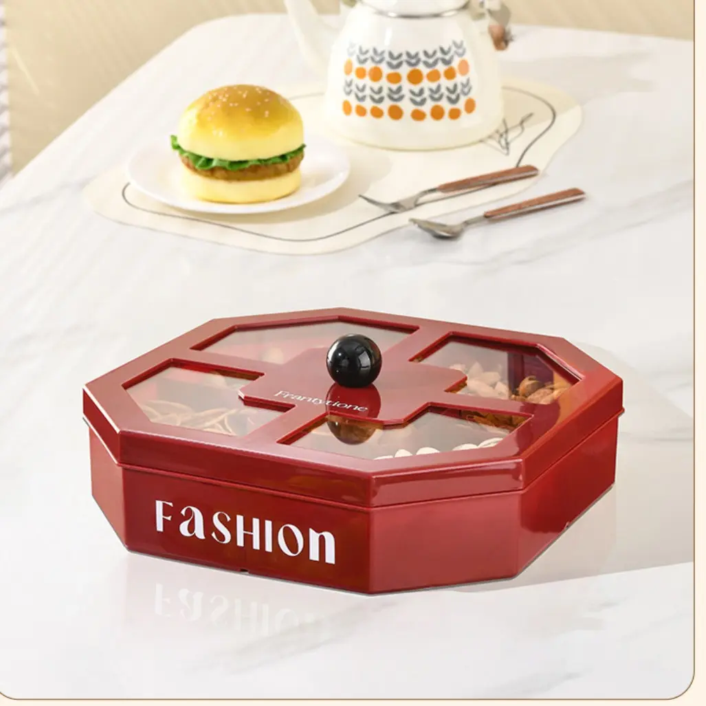 【Segmented Design】: Features segmented sections with lids, perfect for organizing dry fruits, nuts, and candies neatly.