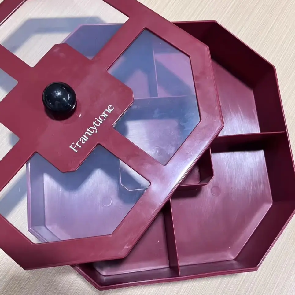 5. Outdoor Multi-Functional Fruit Tray, Segmented Covered Snack Candy Dish, Living Room Coffee Table High Aesthetic Luxury Dry Fruit Nut Storage Box