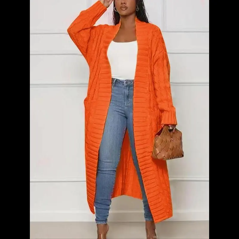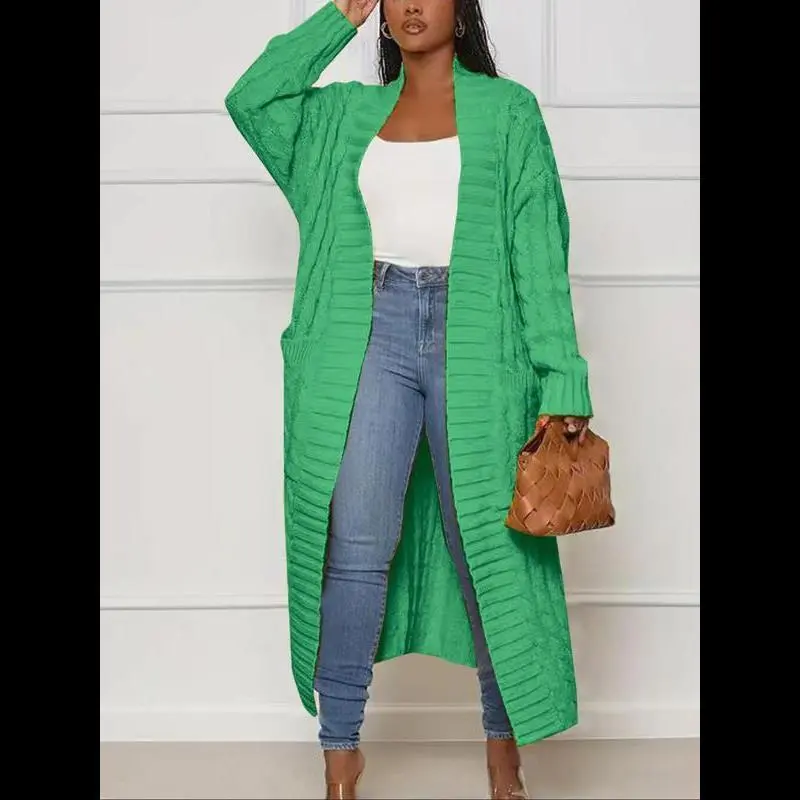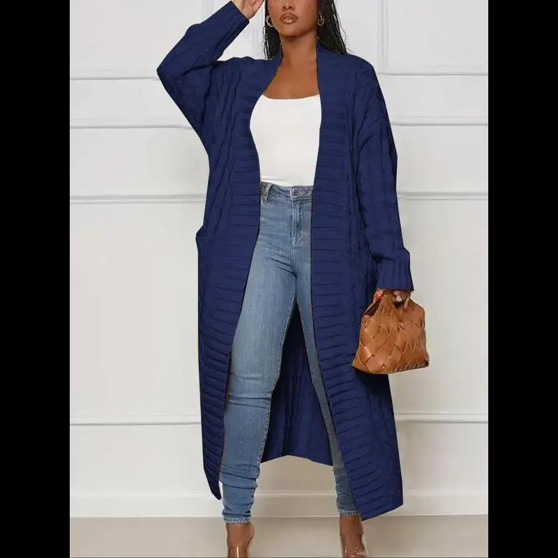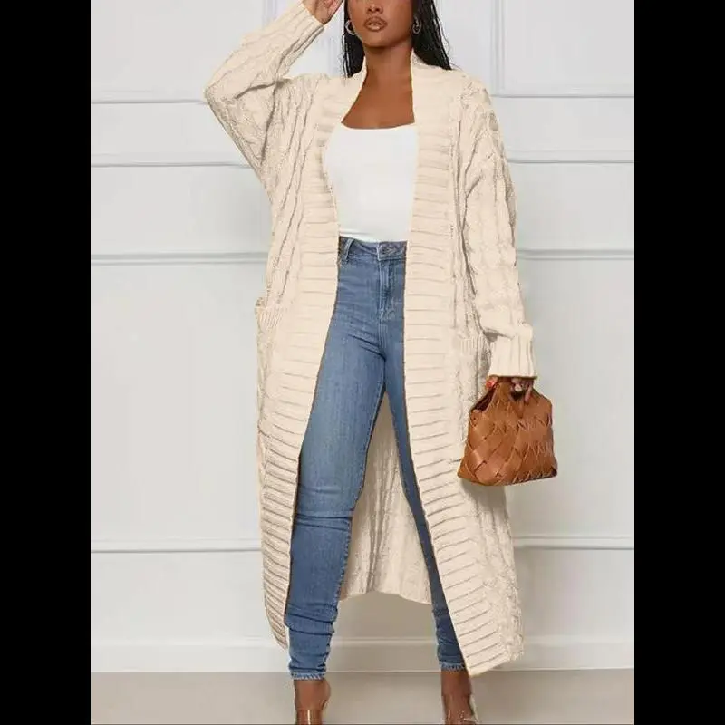 Women's Solid Color Textured Drop Shoulder Pocket Longline Cardigan, Casual Open Front Knitwear Textured Knit for Fall & Winter, Women's Knit Clothing for Daily Wear, Knitwear for Daily Wear Womenswear Tops Knitting Khaki Basic Minimalist