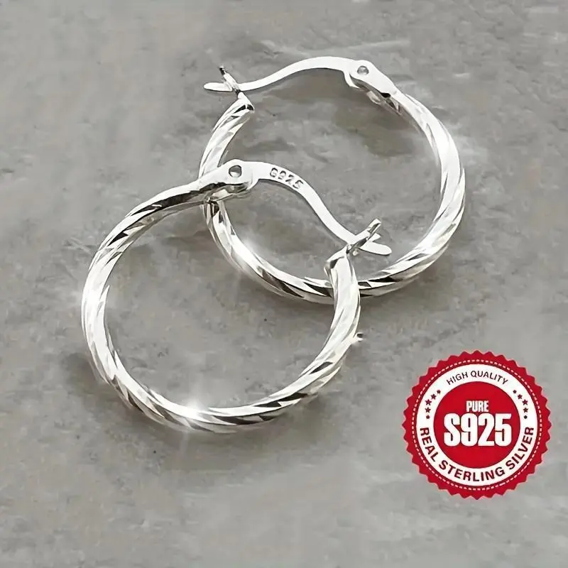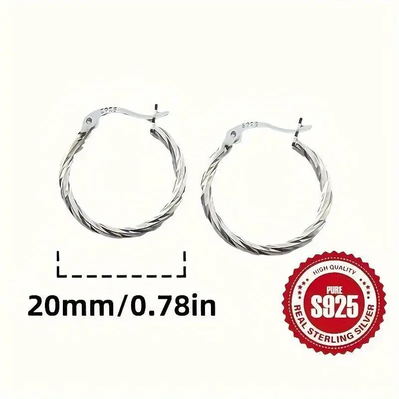 S925 Sterling Silver Hoop Earrings, Minimalist Geometric Twist Circle Hoop Earrings, Classic Style Earrings Jewelry 2.2g/0.08oz
