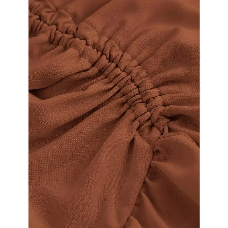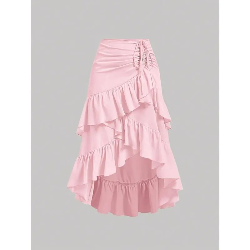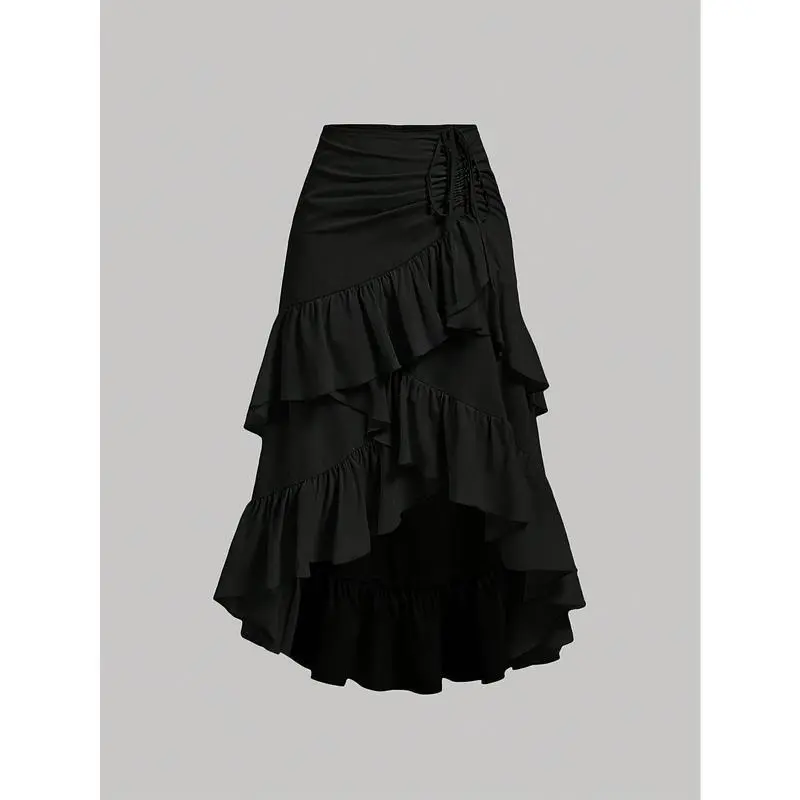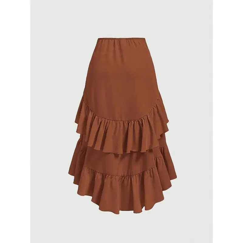 Elegant Brown Asymmetrical Ruffle Hem Skirt for Women - Multi-Layer Design, Polyester, Machine Washable, Perfect for Spring & Fall, Cute Skirts