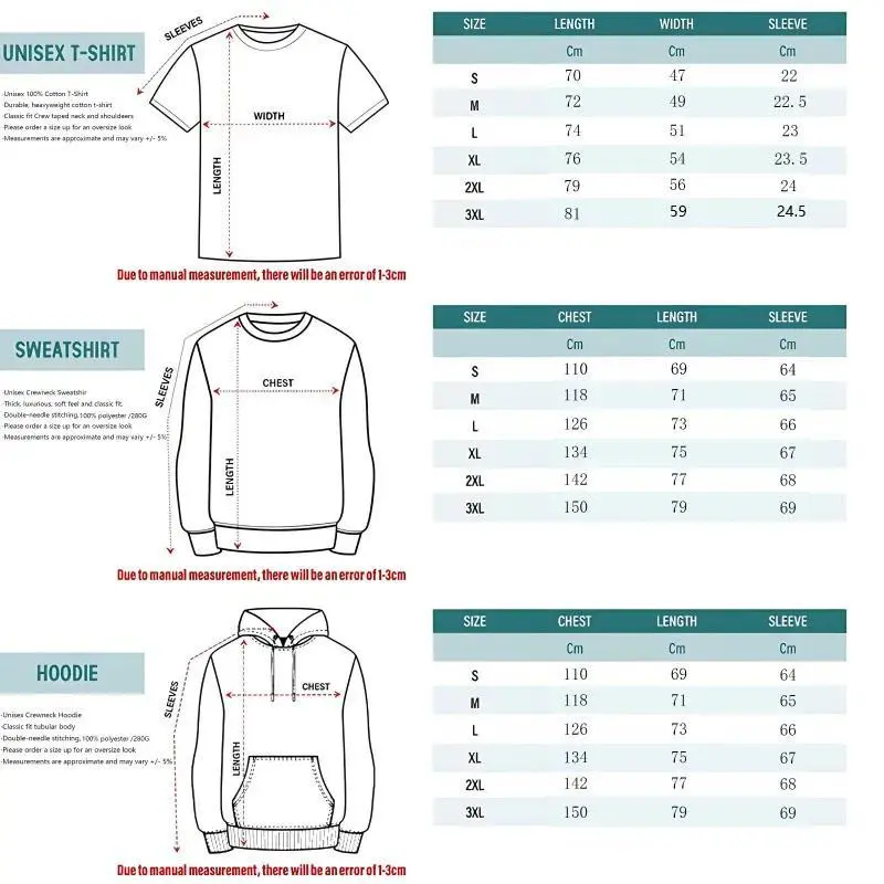 Welcome to My store.If you are looking for soft, comfy, first-rate shirts, you're in the right place!I love what I do and strive to make your shopping experience just right for you.If you have any questions, concerns, need to custom design, or choose another color on my products, feel free to send a message anytime. The highlight of this product is the images printed on the tshirt using advanced digital printing technology. These images are not embroidered but are printed directly on the fabric, so they do not peel off or fade over time - 5.3 oz./yd² (US) 8.8 oz./L yd (CA), 100% cotton - Ash Grey is 99/1 cotton/polyester - Safety Green is compliant with ANSI / ISEA 107 high-visibility standards - Classic width, rib collar - Taped neck and shoulders for comfort and durability Proud member of the U.S. Cotton Trust Protocol Made with OEKO-TEX-certified low-impact dyes RETURNS OR EXCHANGES All of our shirts are custom printed so we do not accept returns or exchanges due to the sizing so please make sure you take all the steps to ensure you get the size you are wanting. However, if there are any issues with the shirt itself, please message us and we'd be happy to help correct the error. PRODUCTION AND SHIPPING Production: 1-2 days Standard Shipping : 3-6 business days after production time