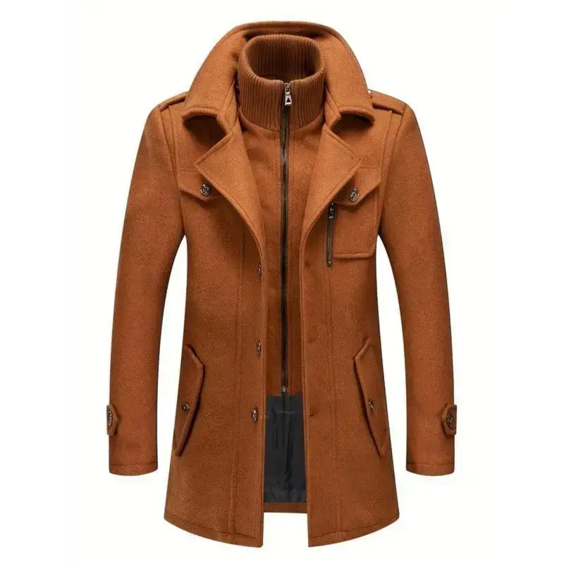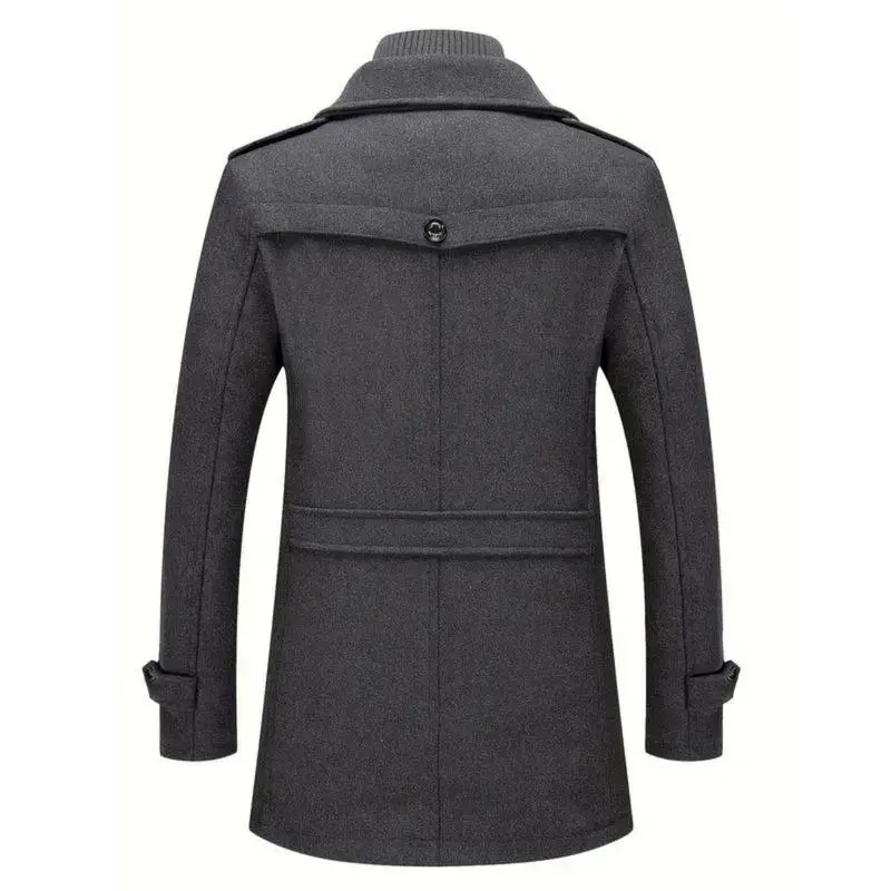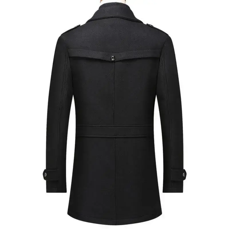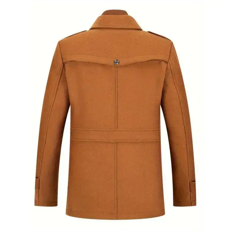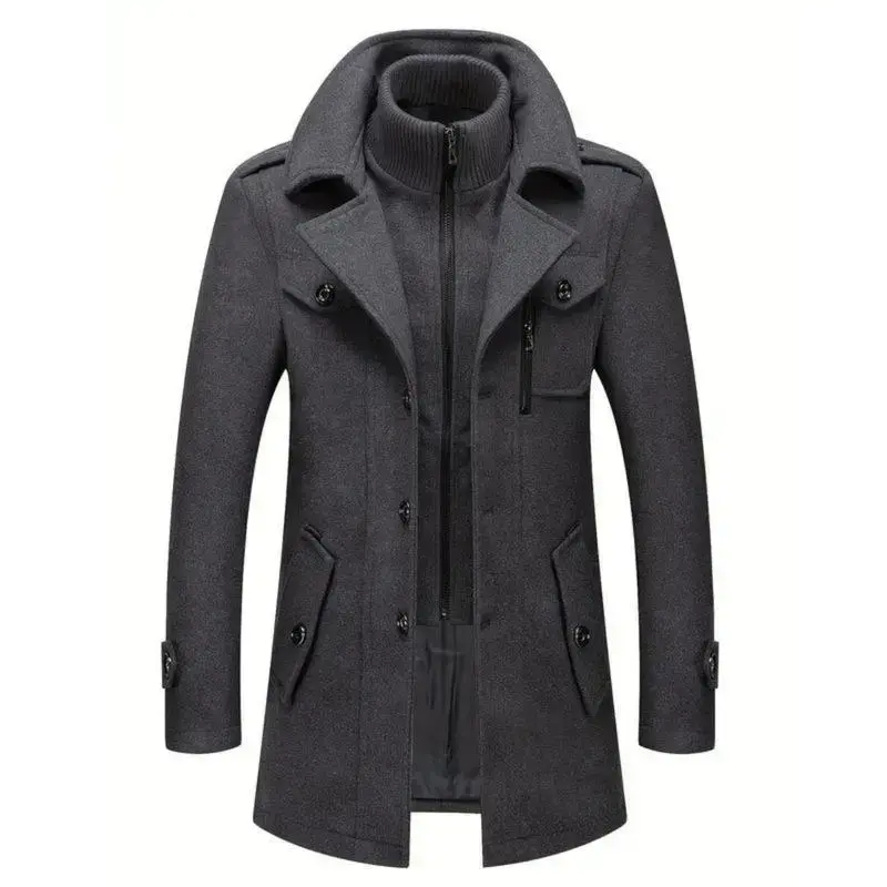 Men's Stand Collar Wool Blend Pea Coats With Removable Single Breasted Overcoat Menswear Jackets Long Sleeve