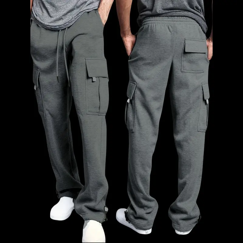 2pcs, Men's Solid Loose Fit Cargo Pants with Multiple Flap Pockets, Casual And Classic Sweatpants for Sports And Outdoors Activities