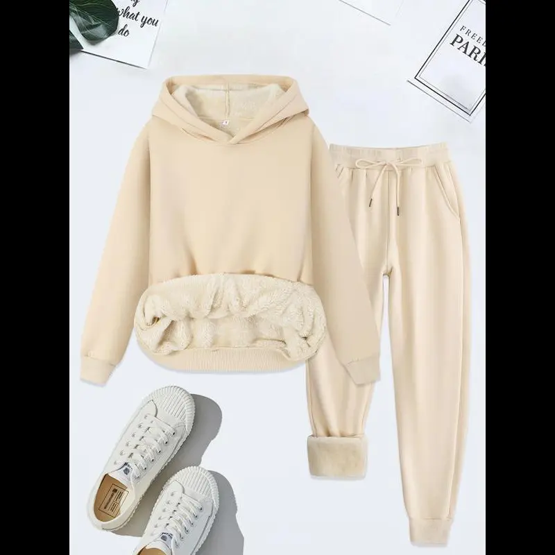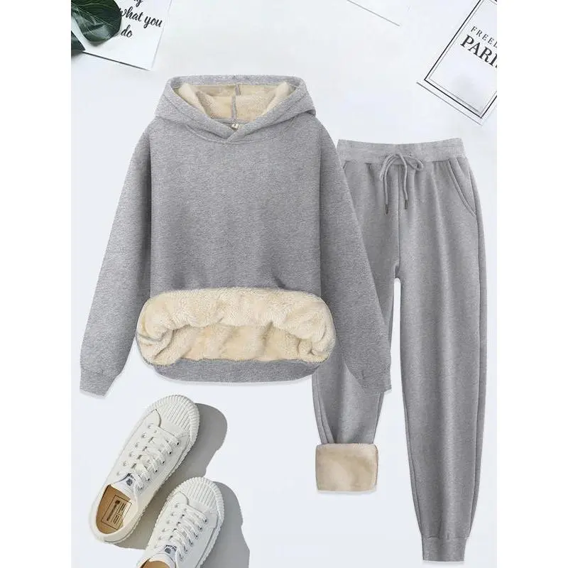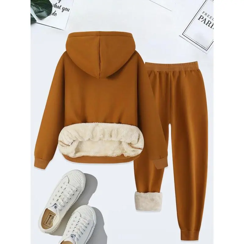 ��Thick Fabric��: Constructed from a thick fabric, this set offers warmth and durability, making it perfect for fall and winter wear. ��Hooded Design��: Featuring a practical hood, this hoodie adds extra warmth and style, ideal for cooler weather outings. ��Fitted Cut��: Designed with a fitted silhouette, this set flatters your figure while allowing ease of movement for daily activities. ��Regular Length��: With a classic regular length, the tops and bottoms offer a balanced look that pairs well with various footwear. ��Two-Piece Set��: This matching two-piece set simplifies outfit selection, providing a cohesive look that��s ready for any occasion.