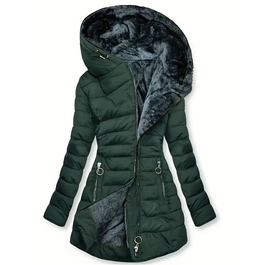 Women's Winter Windproof Fur Warm Slim Fit Down Jacket - Waterproof Long Ski Coat for Commuting