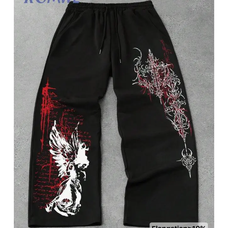 These gothic-style terror bird print sweatpants feature a soft and comfortable fabric for ultimate comfort. The stylish design is perfect for casual wear and outdoor activities.