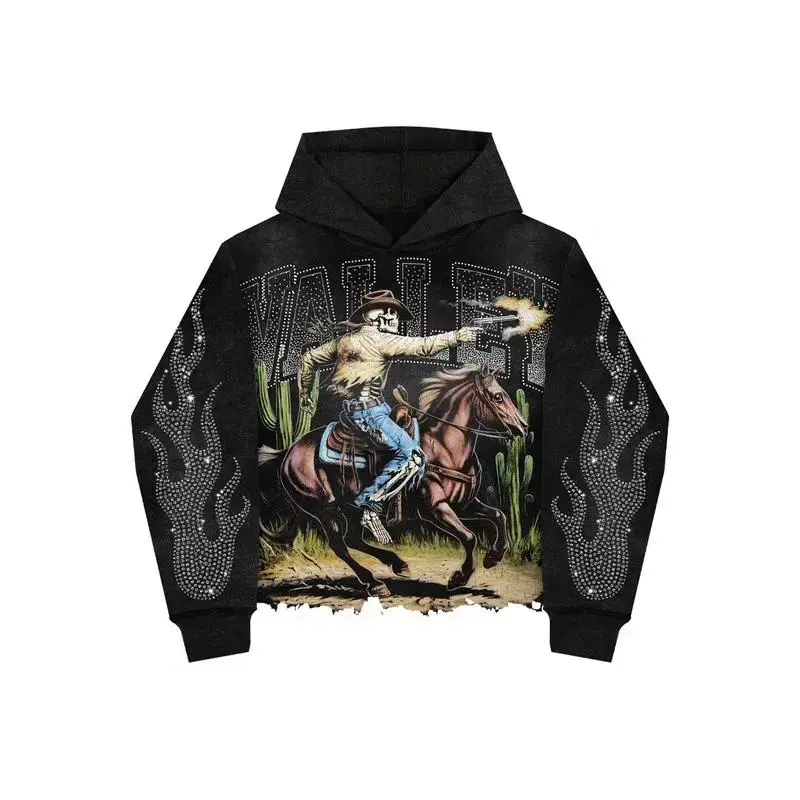 Valley Dreams Cowboy Skeleton Print Graphic Shirt Y2K Shirt Unisex Streetwear Graphic Tee Casual Spandex Hoodie Women