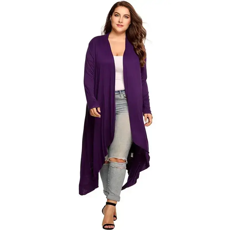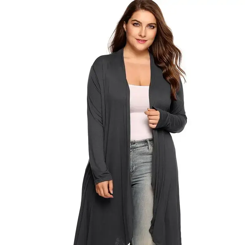 Women's Plus Size Cardigan Long Sleeve Open Front Drape Cardigans Lightweight Long Duster Size runs long/Slim fit versionh3mm