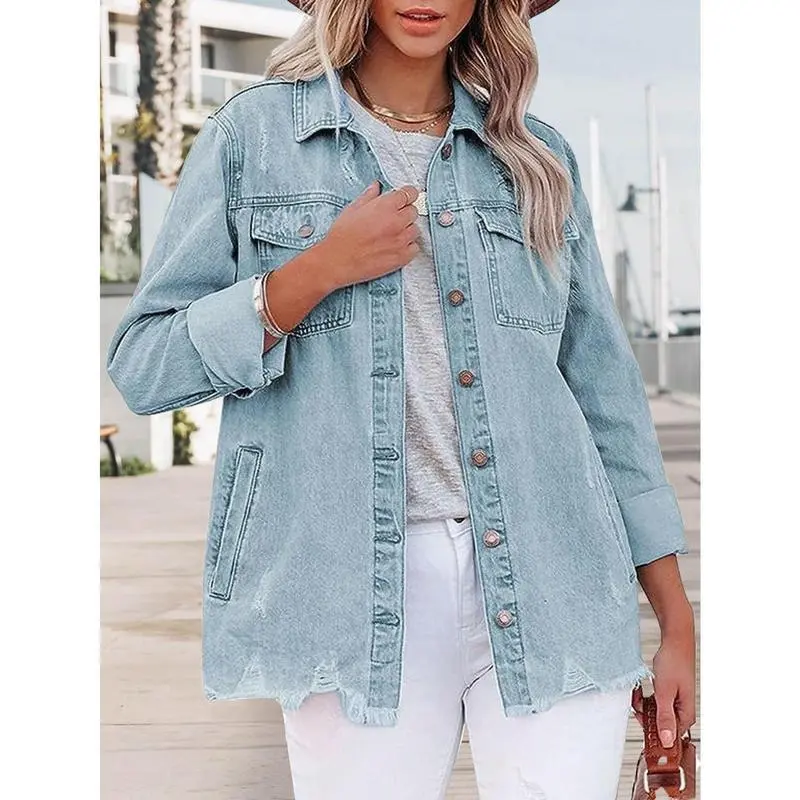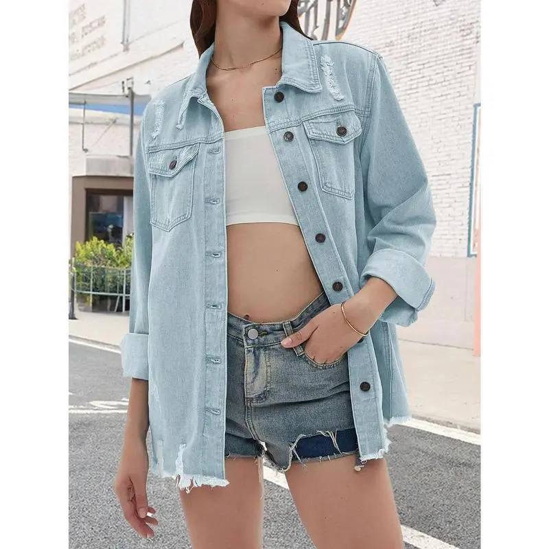 Features: Jean jackets for women fashion have two side pockets, two flap pockets, lapel, button down, frayed hem, long sleeves, distressed details Material: This denim jacket for women is crafted from cotton, our washed jean jacket women is lightweight and breathable to wear in spring, summer, fall and winter Styles: Vintage women denim shirt, ripped loose fit jean coat, oversized jean jacket for women, providing you with maximum comfort and great for everyday wear Match: Denim jackets for women are trendy and fashion, it is versatile to match any chic items in your closet such as tank tops, vest, jeans, skirts, jeggings, sneakers or heels Occasion: Blue jean jacket for women denim, black jean jacket women, concert outfits for women, great season transition denim outerwear, perfect jean jacket for girls and young ladies, suitable for school, office, street, dating and so on, If you prefer a more relaxed style, go one size up