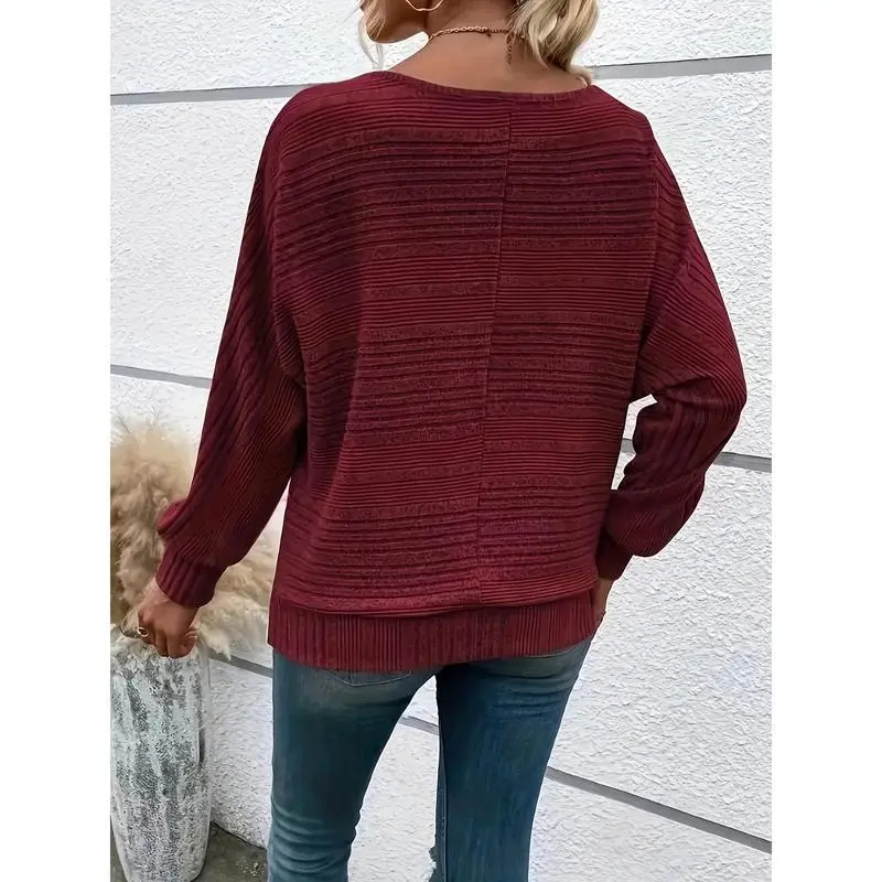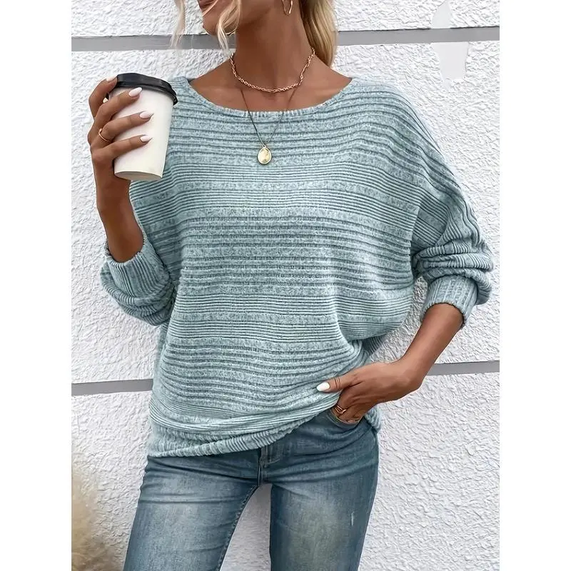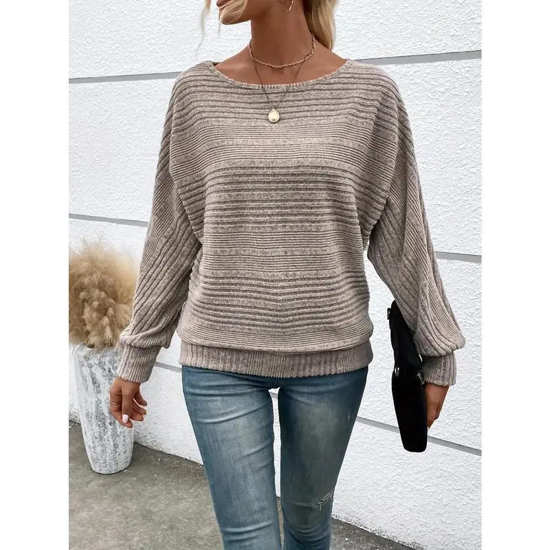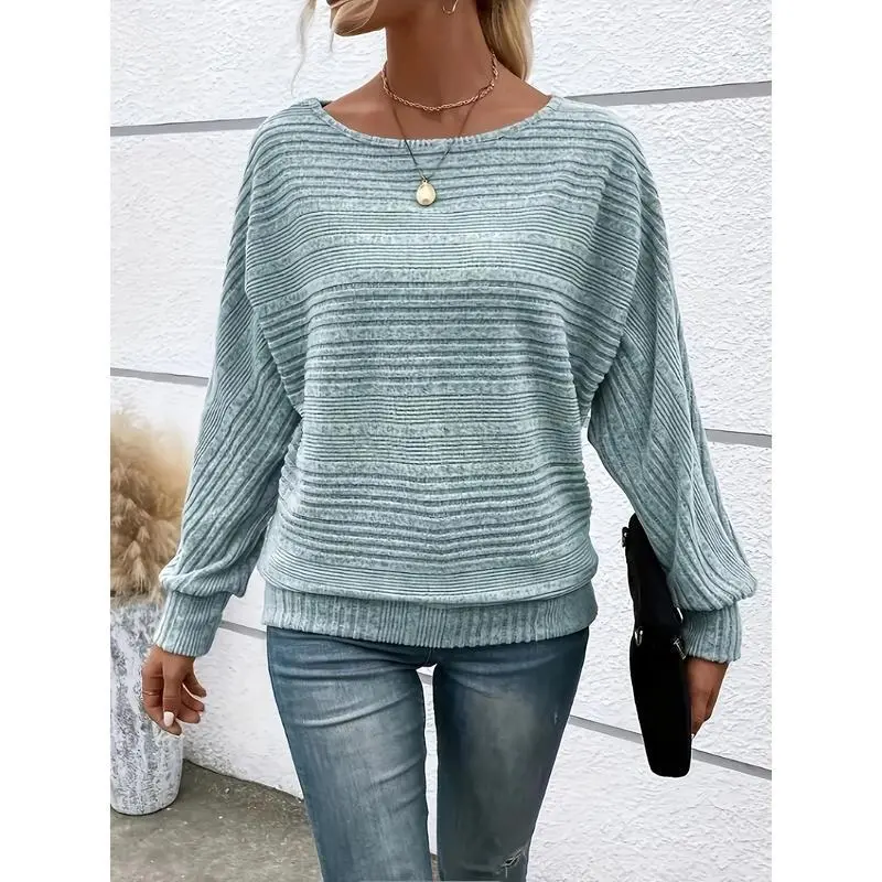 Women's CasualBatwing Sleeve Pullover - High Elasticity Loose Fit Round Neck , Solid Color Autumn Winter Fashion Top Basic