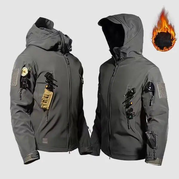 Autumn and Winter Men's Jacket - Multi-Pocket Hooded Jacket, Outdoor Tactical Workwear, Warm, Windproof, Durable, Suitable for Studio Work, Outdoor Hiking, and Fishing Leisure Sports Clothing casual coat long-sleeved