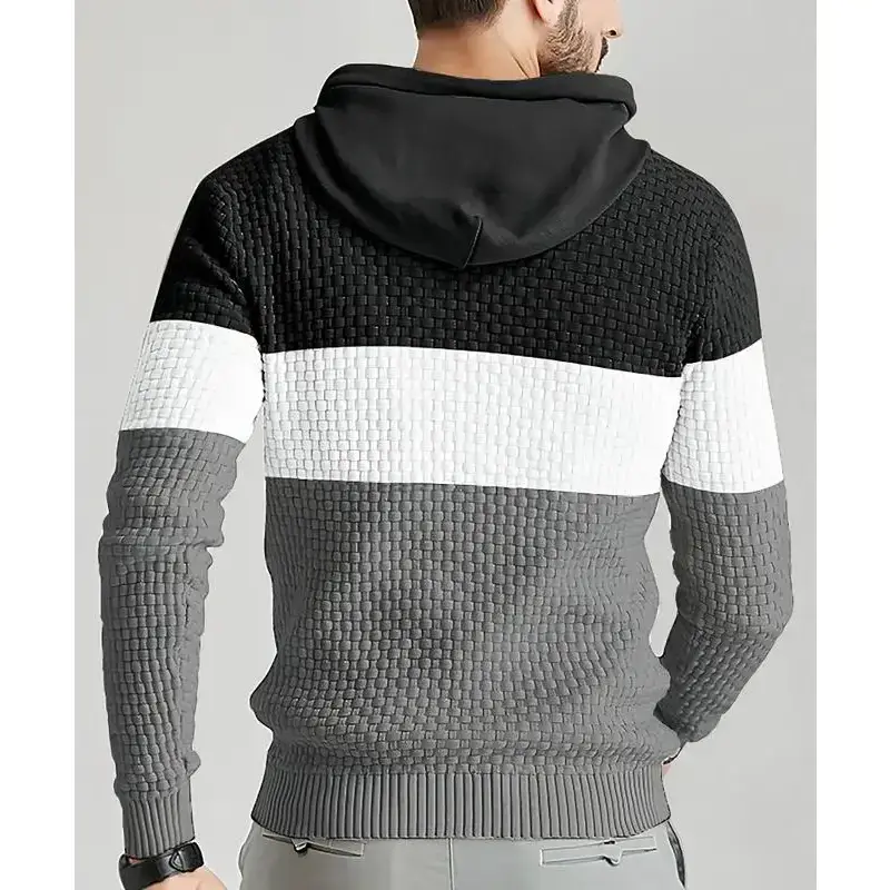 Men's hooded sweatshirt, tricolor long sleeved solid color knitted hooded sweatshirt, pullover sweater, Christmas gift