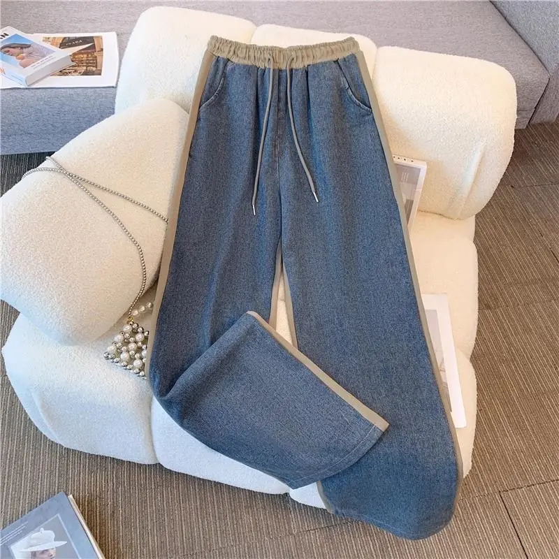 Denim Pants Sets Stand Collar Patchwork High Street Coats Tops Wide Leg Straight Gothic Jeans Vintage Simple Two-piece Set Womenswear Clothes