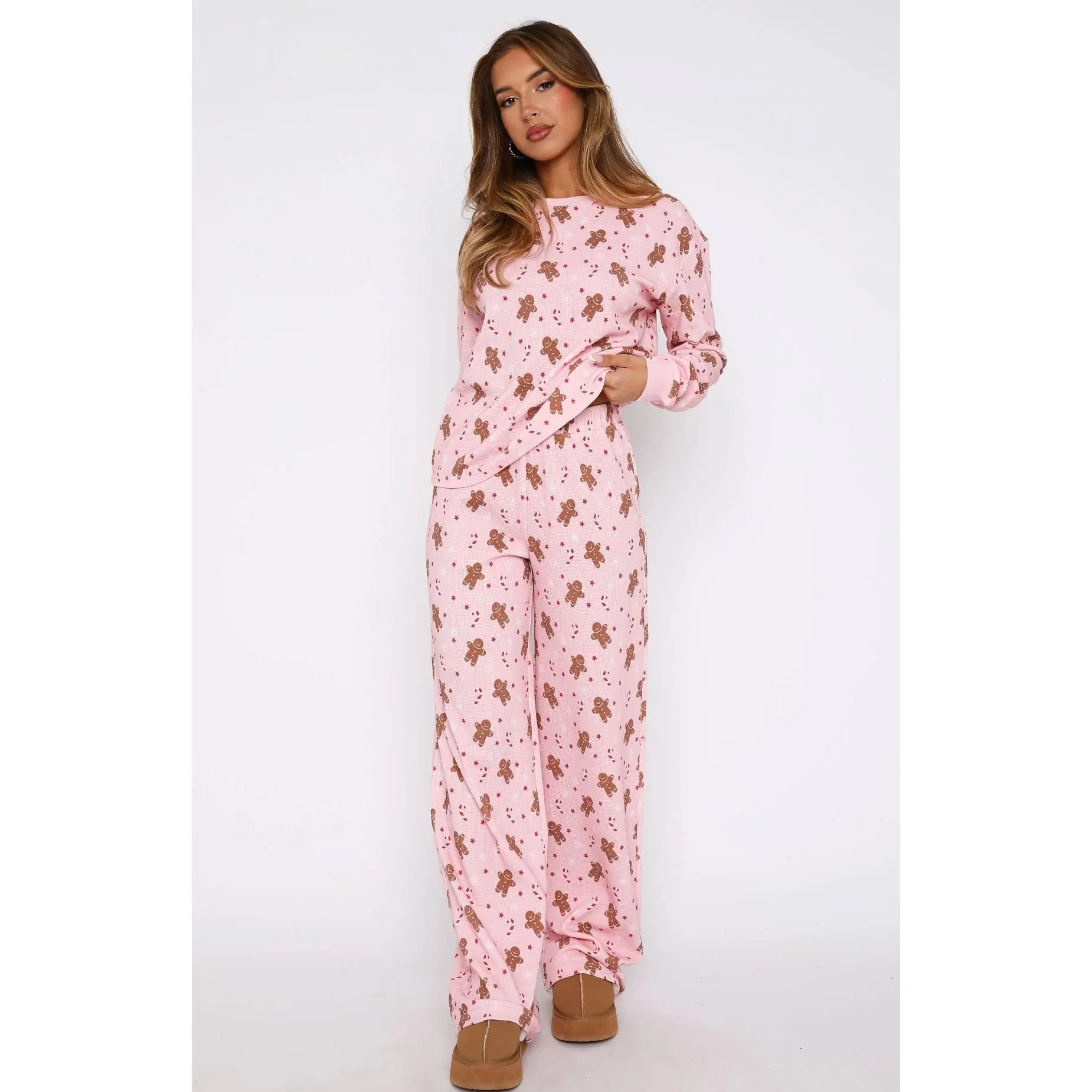 🎄 Festive Style for Women 🎄 ✨ Christmas Women’s Outfits - This set includes a casual gingerbread print long sleeve top and elastic pants. Perfect for streetwear, it combines comfort with a festive touch. Ideal for holiday outings or casual days. 🎨 Stylish and Comfortable 🎨 This outfit is designed for comfort and style. The long sleeve top and elastic pants offer a relaxed fit. The gingerbread print makes it a standout piece for the holiday season. Perfect for those looking for a festive, casual look.