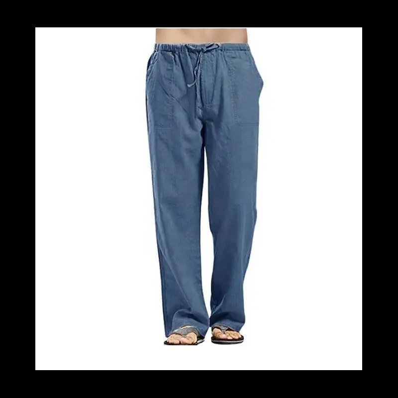 Trouser 2025 Men's Linen Pants - Loose Fit Menswear Beige Plain Pocket Tropical White