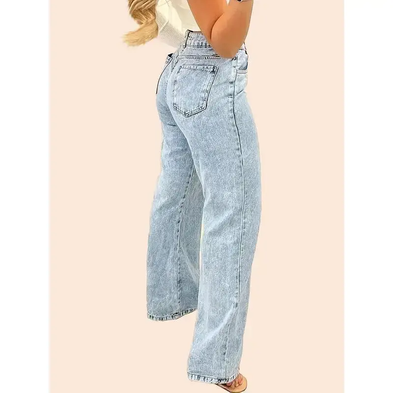 Women's High-Waisted Straight-Leg Stretch Denim Jeans - Comfort Fit, Classic Blue Wash, Soft & Breathable for Everyday FashionCan be used with raincoat
